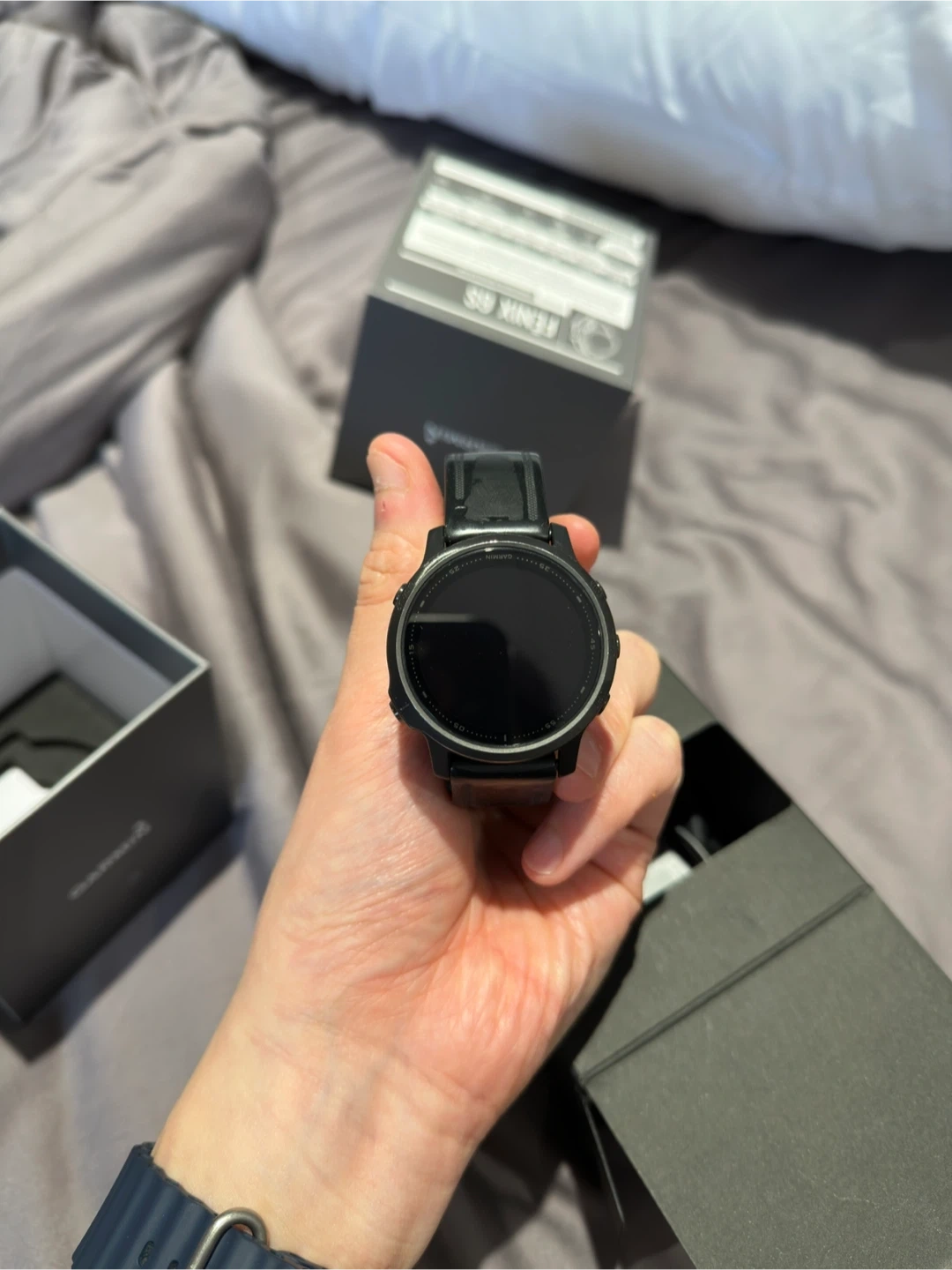 Watch in black. It's a sapphire edition with original packaging and charging cable included.