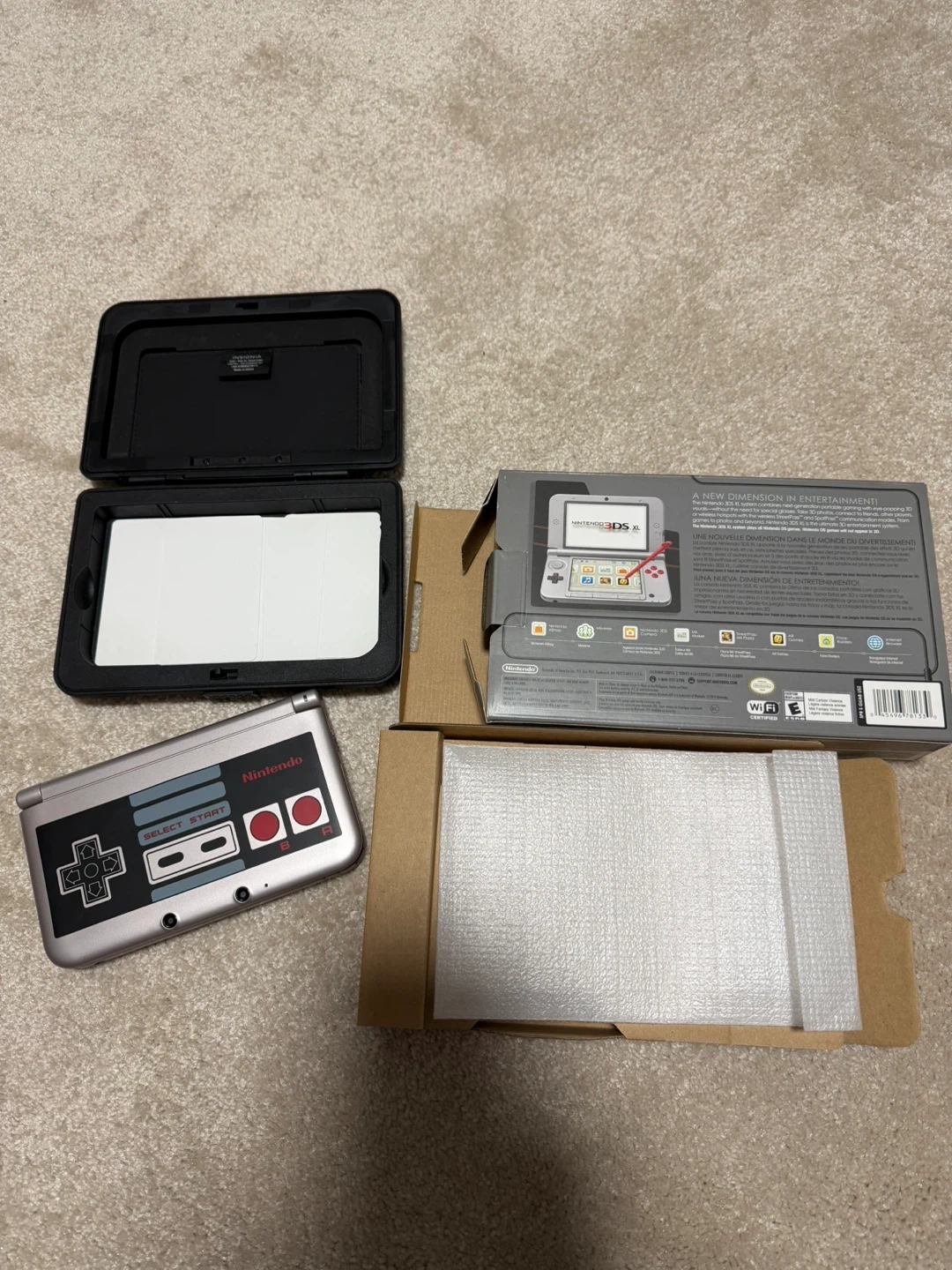 This is a Nintendo 3DS XL console in the limited edition NES design. It comes with its original box and a protective carrying case. It's a great piece for any Nintendo collector! (Not a single scratch screen protectors on both screens)