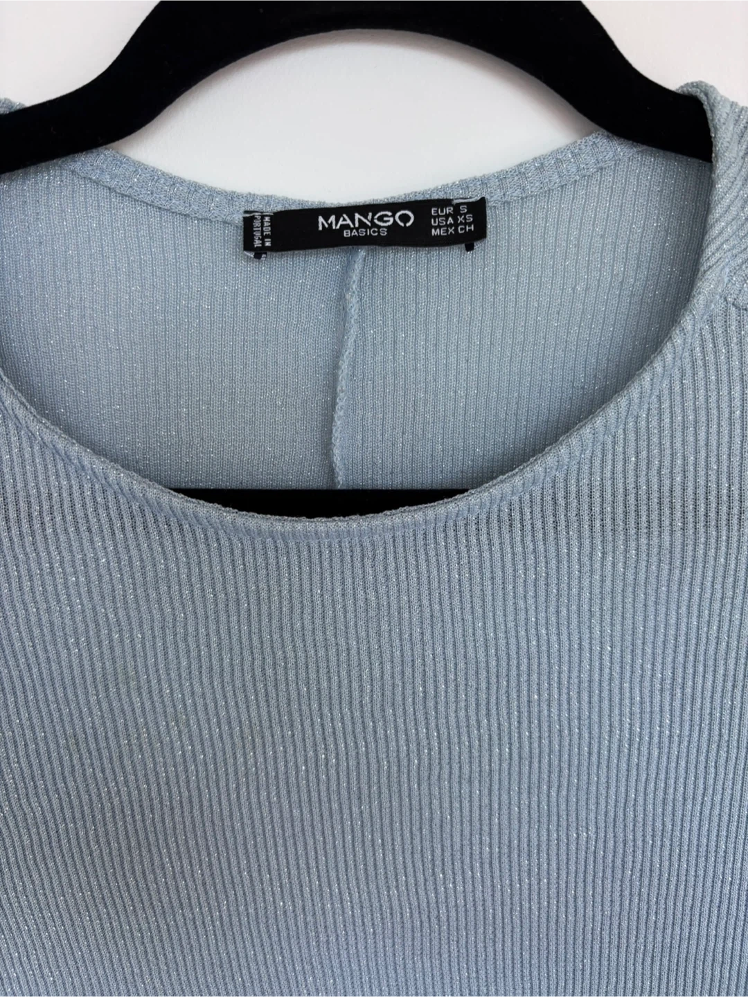 This is a blue sparkly ribbed top from Mango Basics.