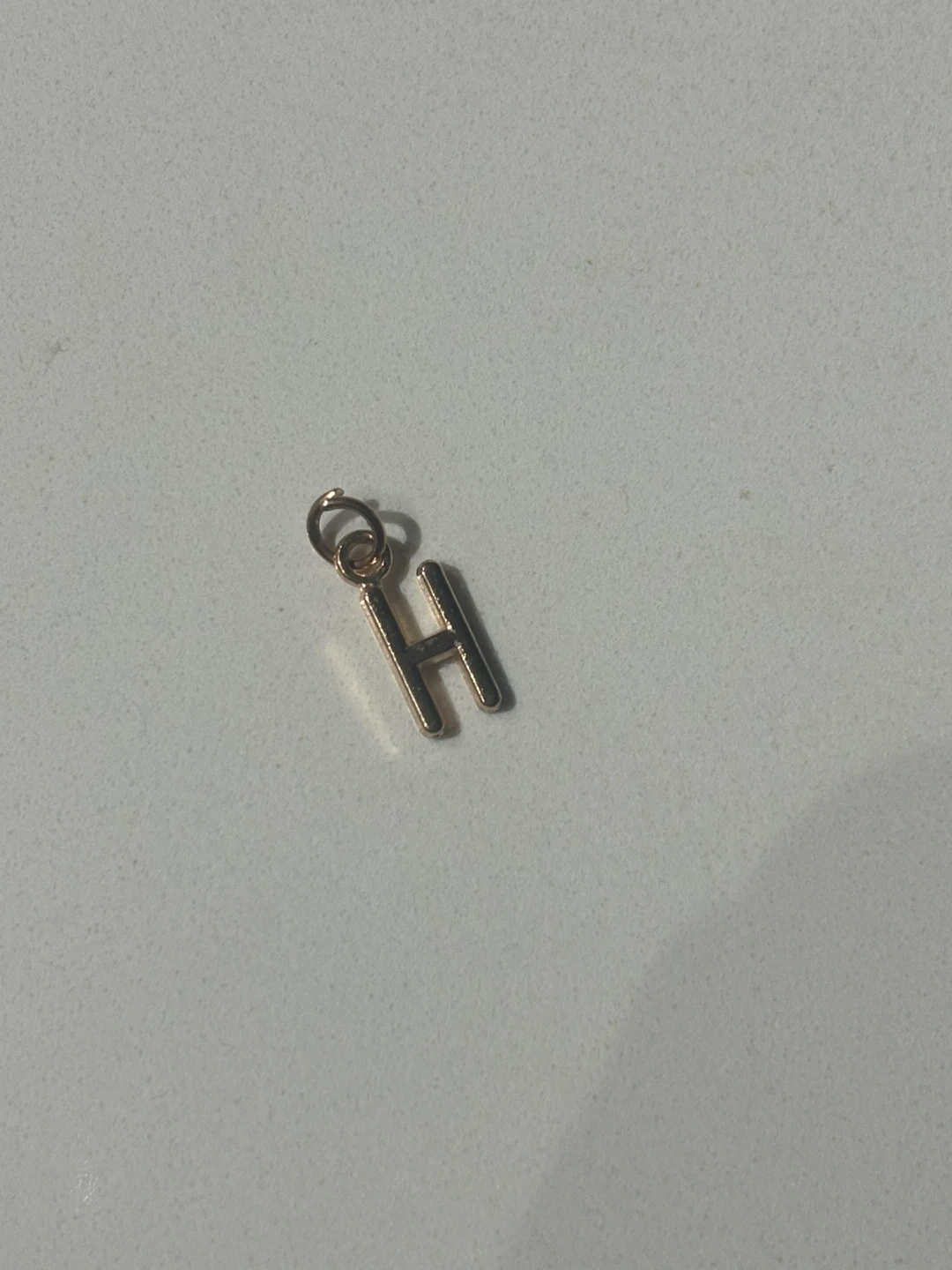 A small gold tone charm shaped like the letter H. It has a loop for attaching to a bracelet or necklace. Perfect for personalizing jewellery!
