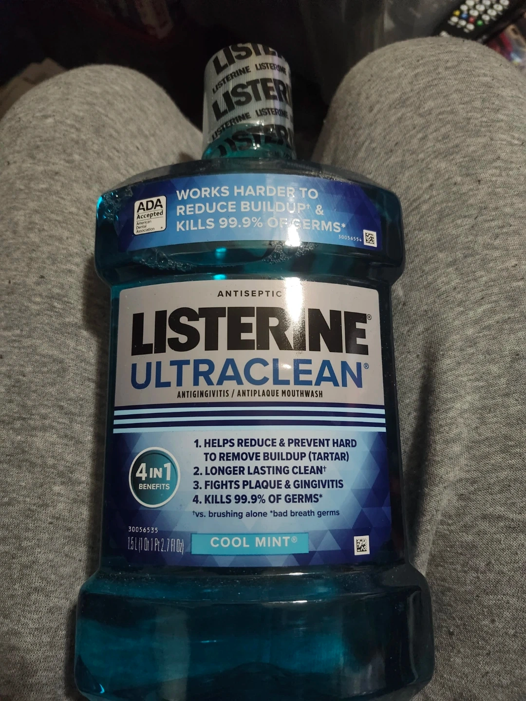 This Listerine Ultraclean Antiseptic Mouthwash comes in Cool Mint flavor. It's designed to help reduce buildup, fight plaque and gingivitis, and kill germs. The bottle contains 1.5 liters of mouthwash.