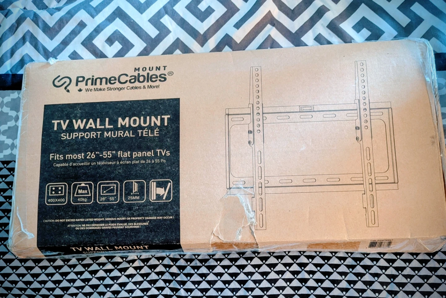 Selling a PrimeCables TV wall mount that fits most 26"-55" flat panel TVs. It supports VESA patterns up to 400x400 and a maximum weight of 40kg. Perfect for mounting your TV securely!