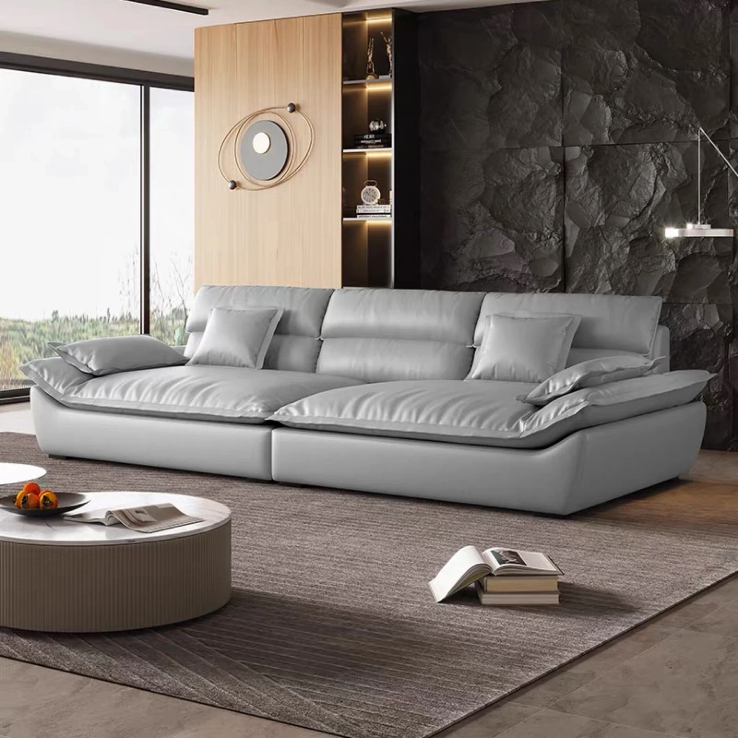 A comfortable and stylish modern sofa with plush cushions. Upholstered in an anti cat scratch leather sofa. It's a great addition to any living space.