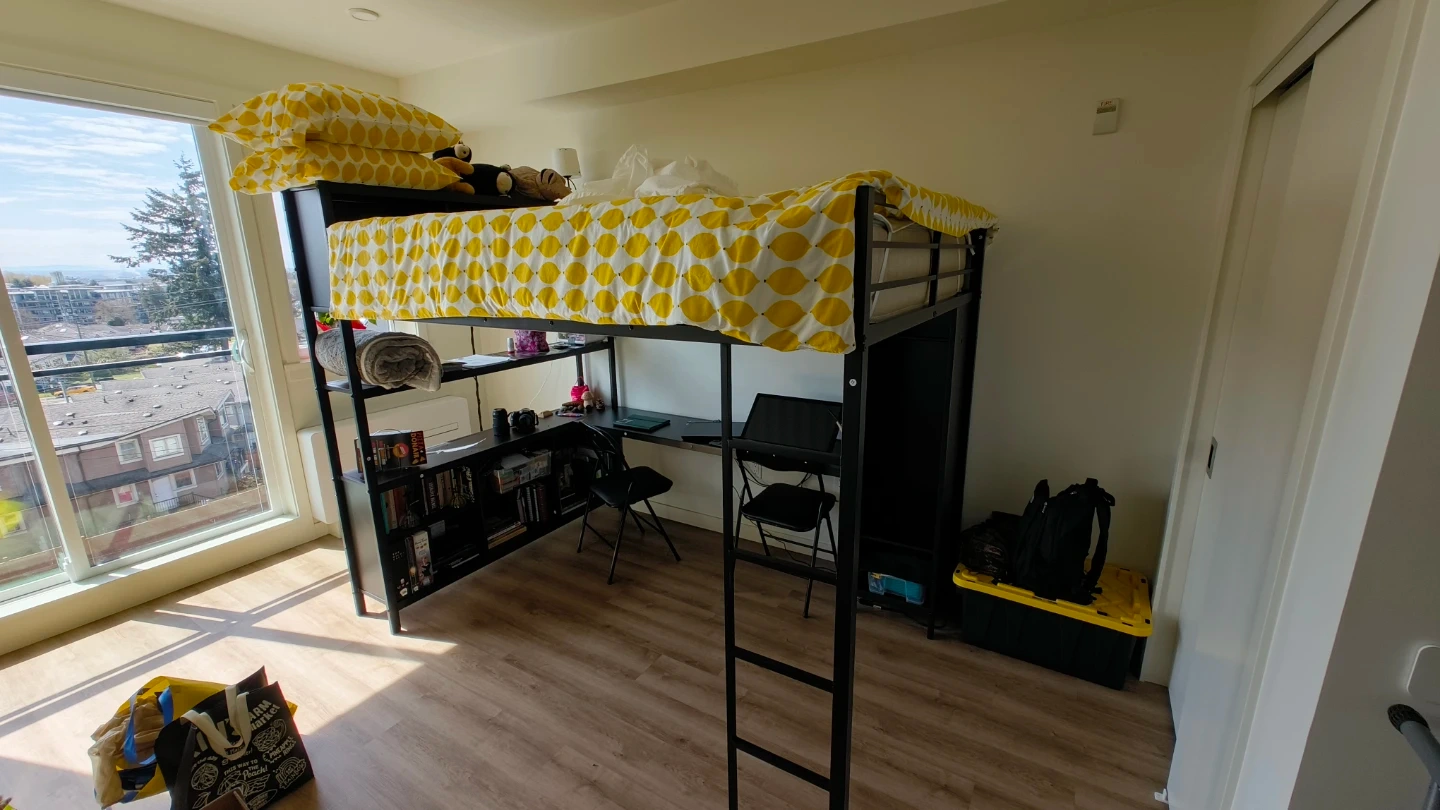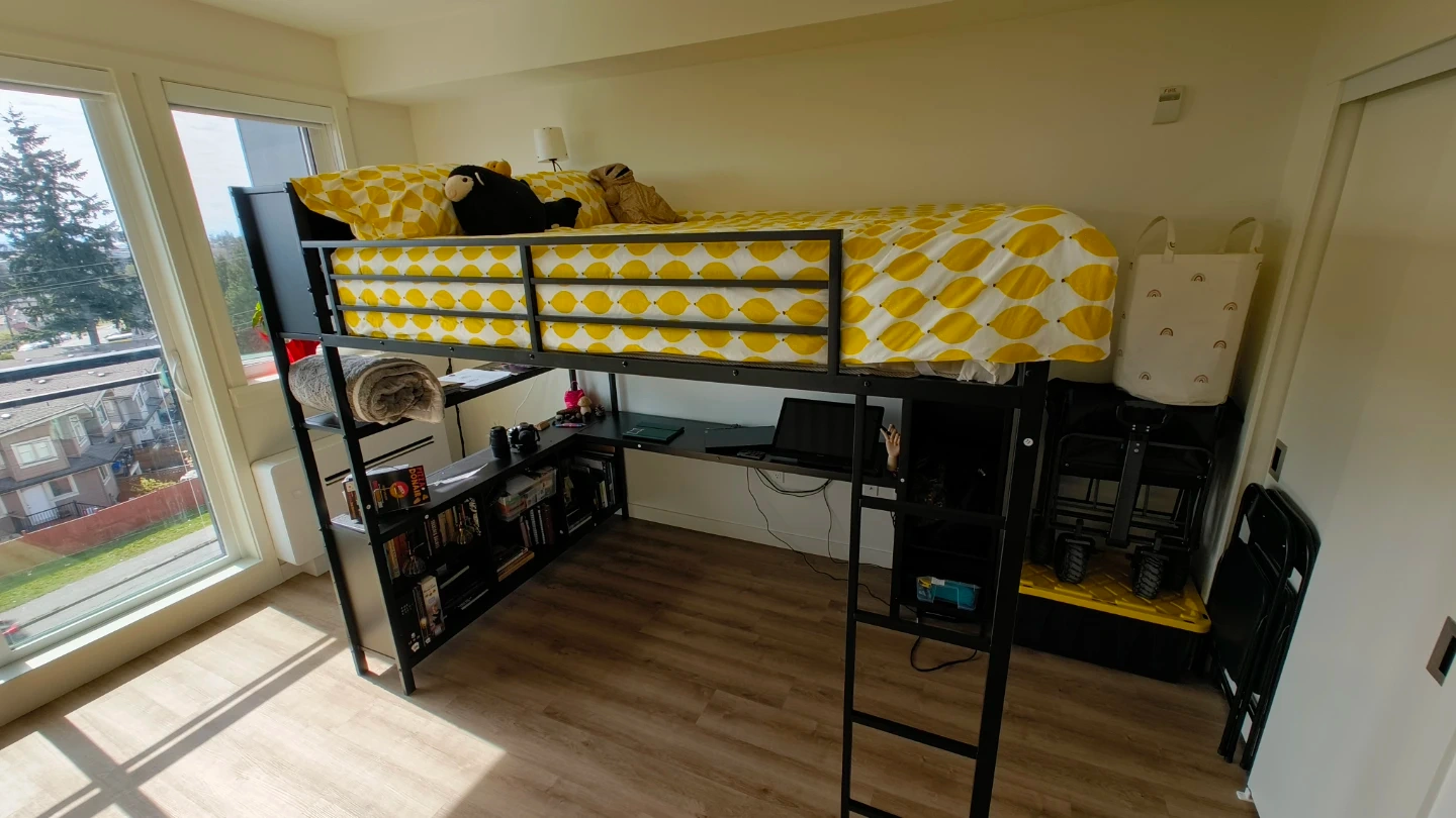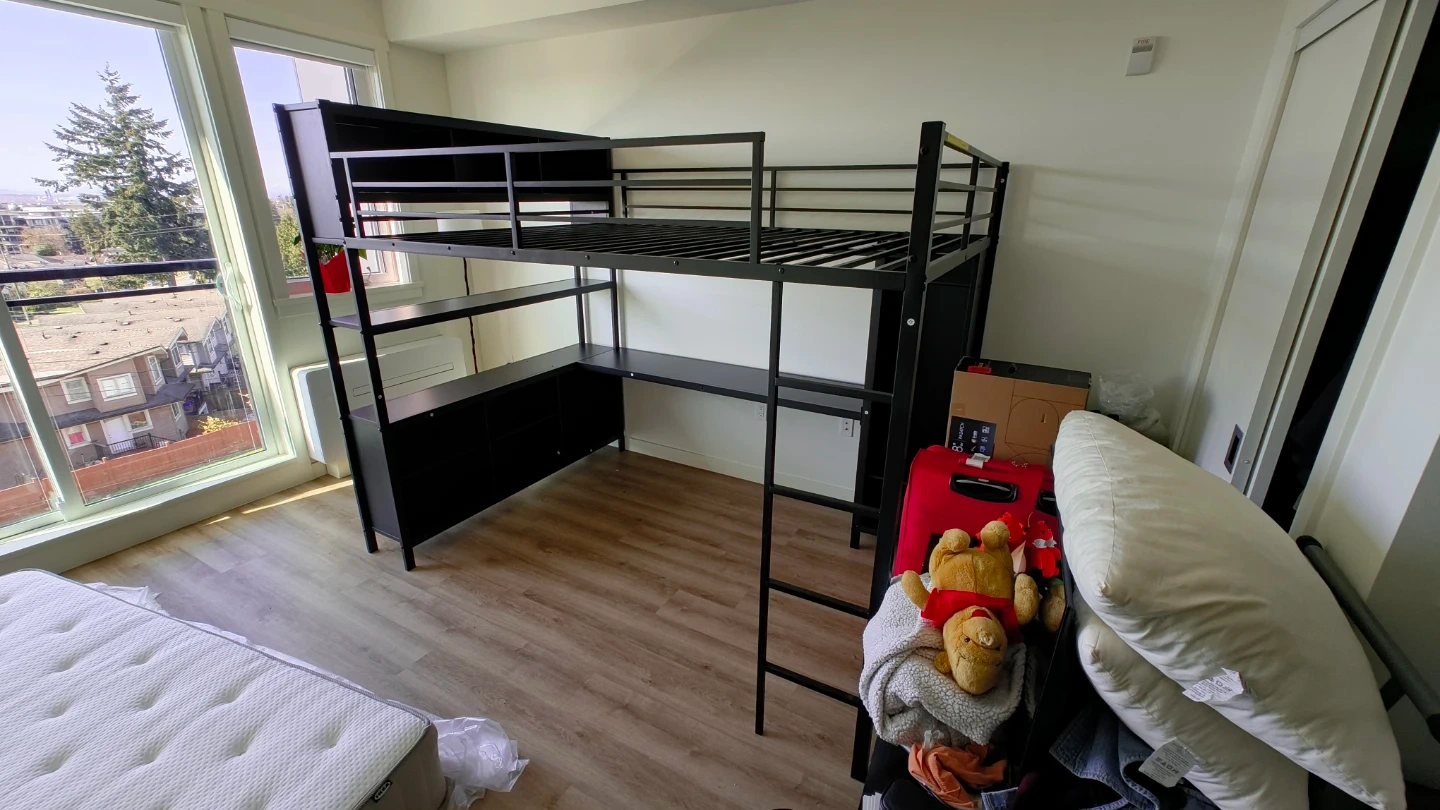 This black metal loft bed features a built-in desk and shelving unit, perfect for optimizing space. It's constructed with durable metal for long-lasting use. The integrated desk provides a functional workspace.