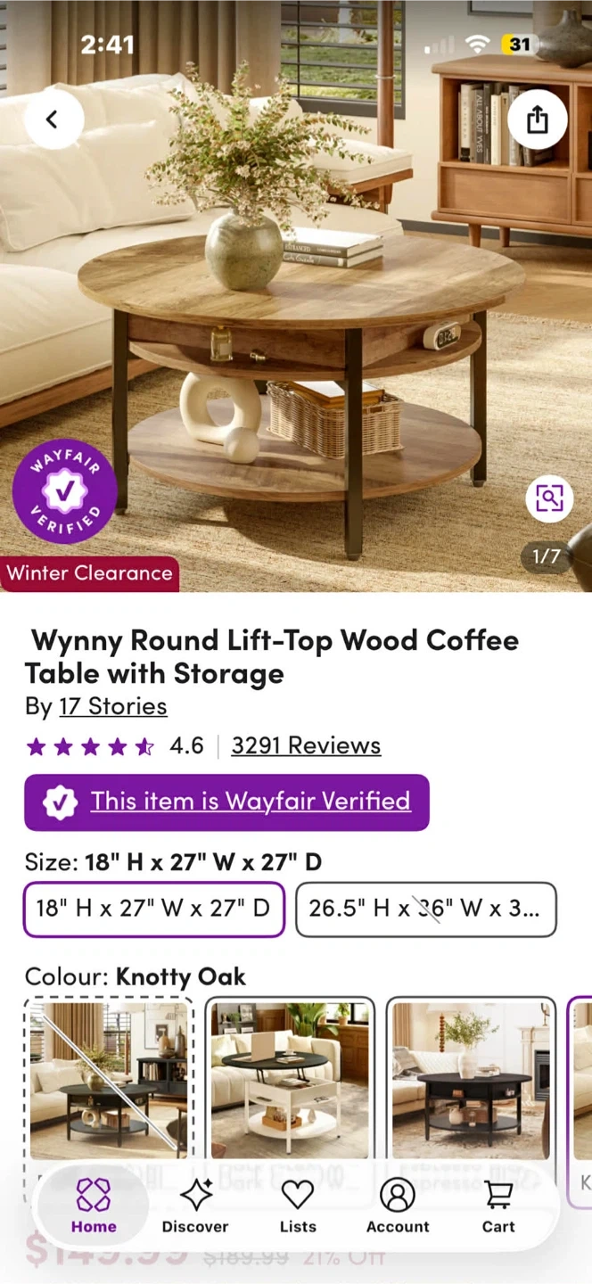 Round Lift-Top Coffee Table