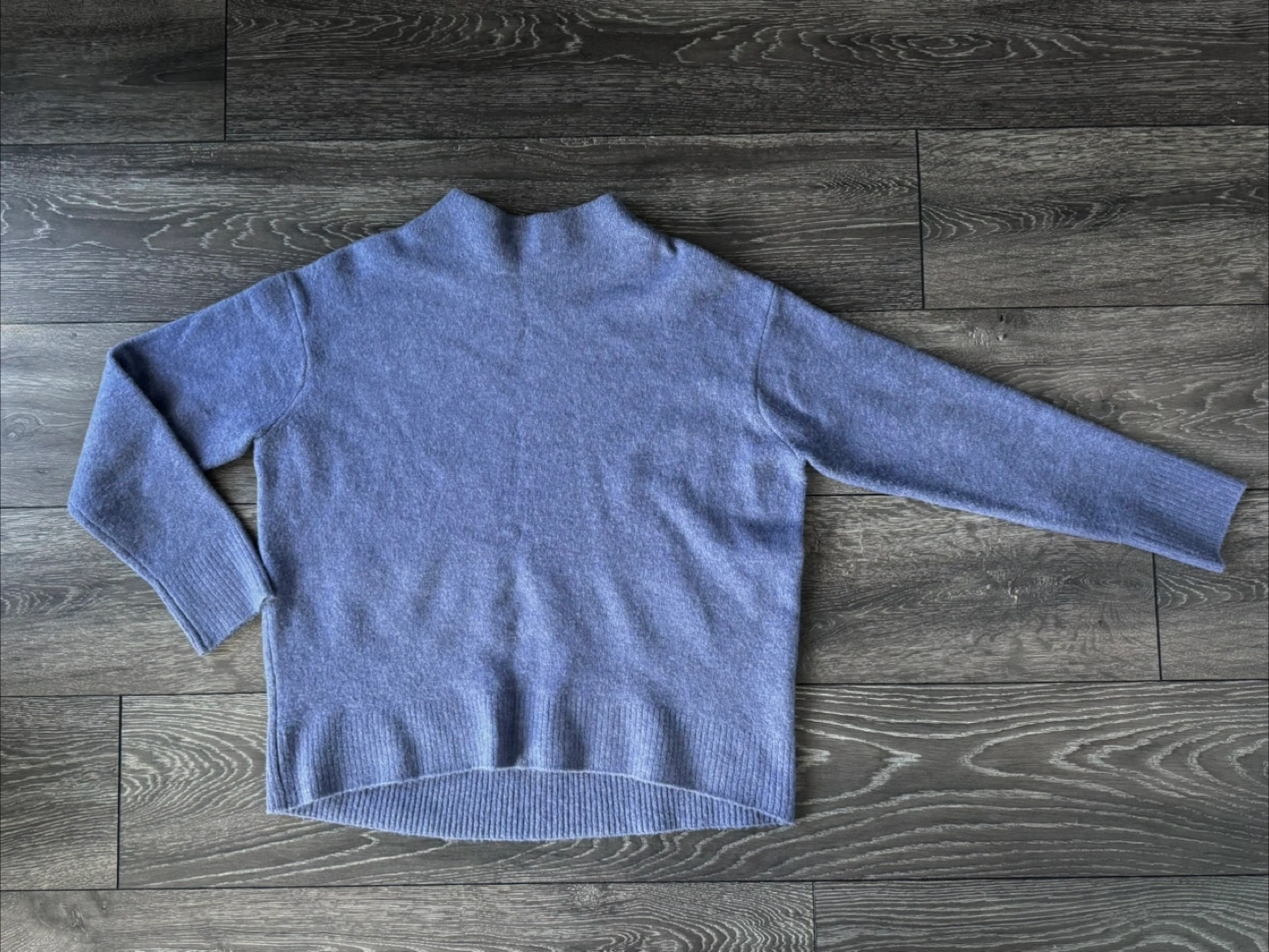 Cozy, soft periwinkle mock neck sweater. Long sleeves, relaxed fit. Great for layering.