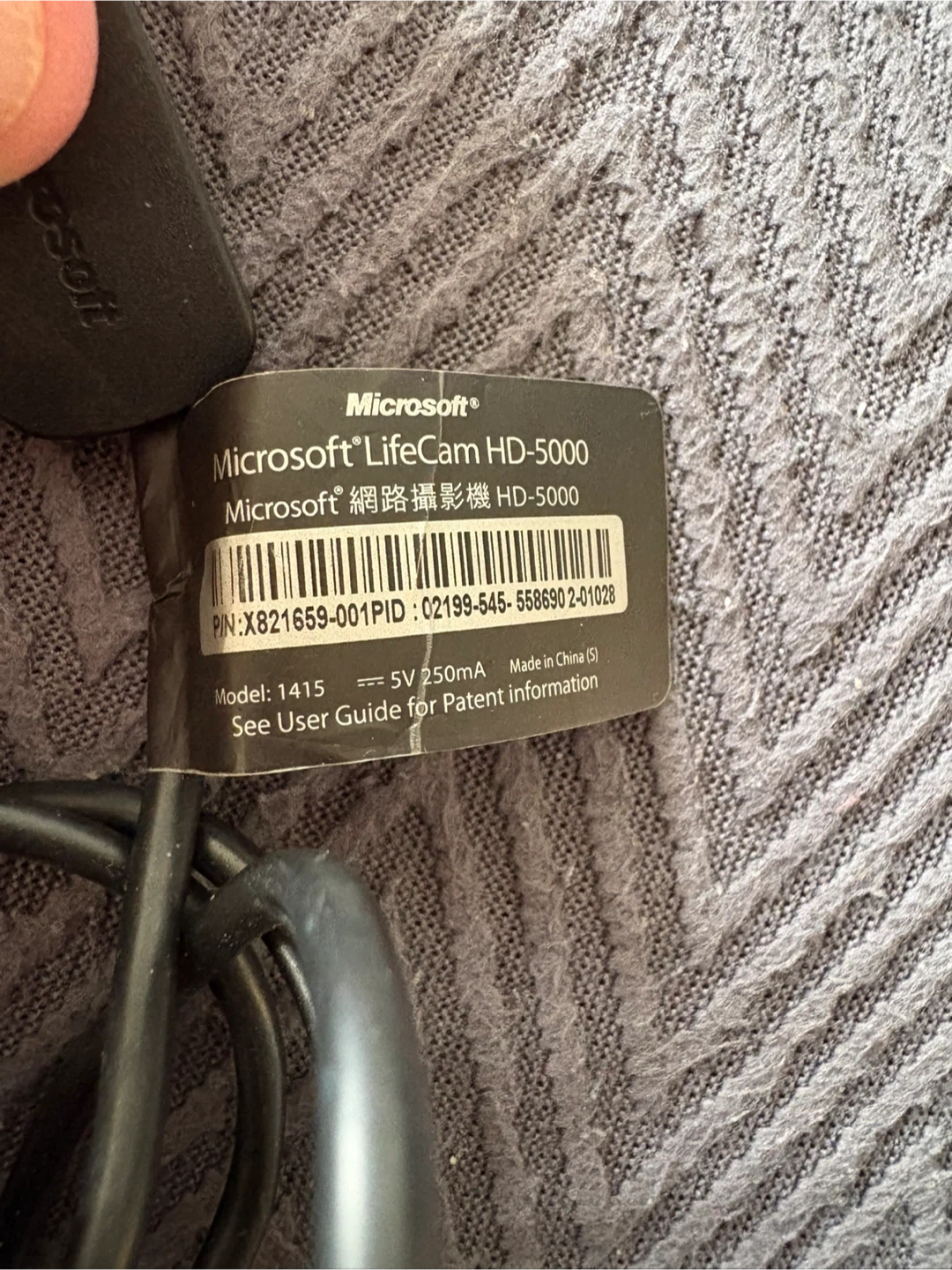 This is a Microsoft LifeCam HD-5000 webcam. It's a model 1415 that runs on 5V, 250mA. It's made in China.