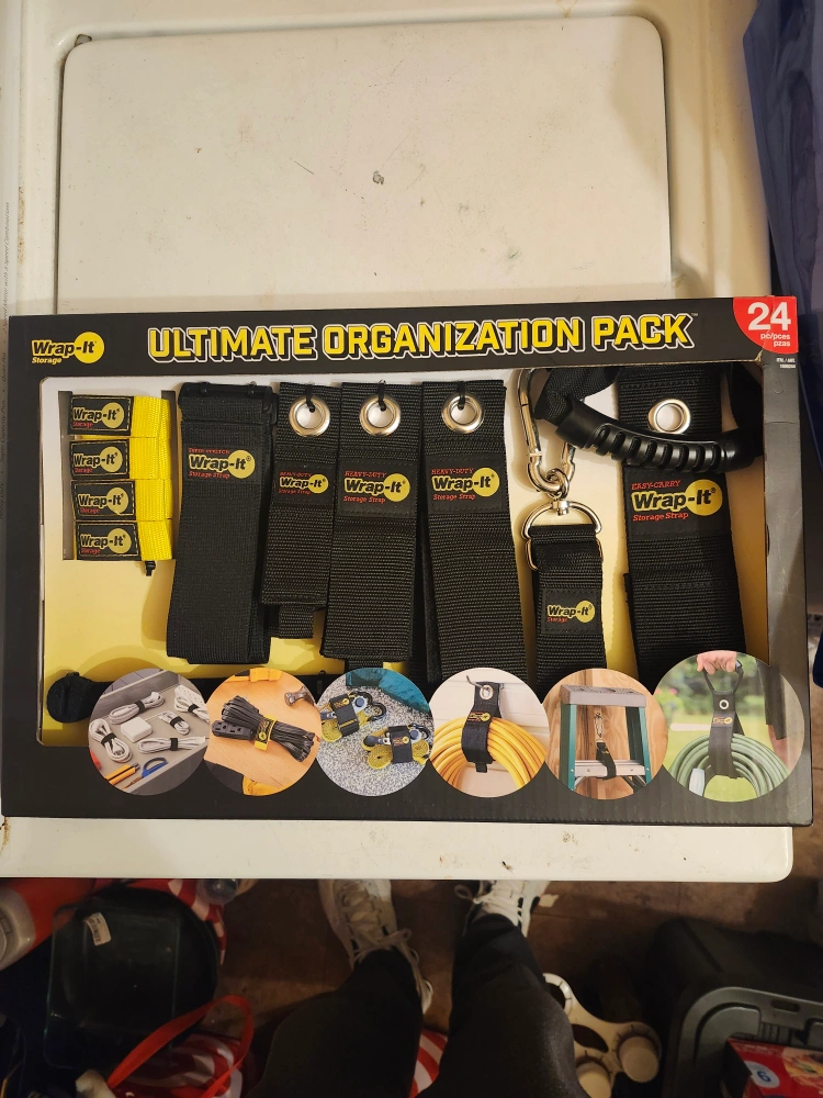 Selling a Wrap-It Ultimate Organization Pack! This pack includes 24 pieces to help you get organized. It's great for organizing cords, hoses, and more. The box is included!