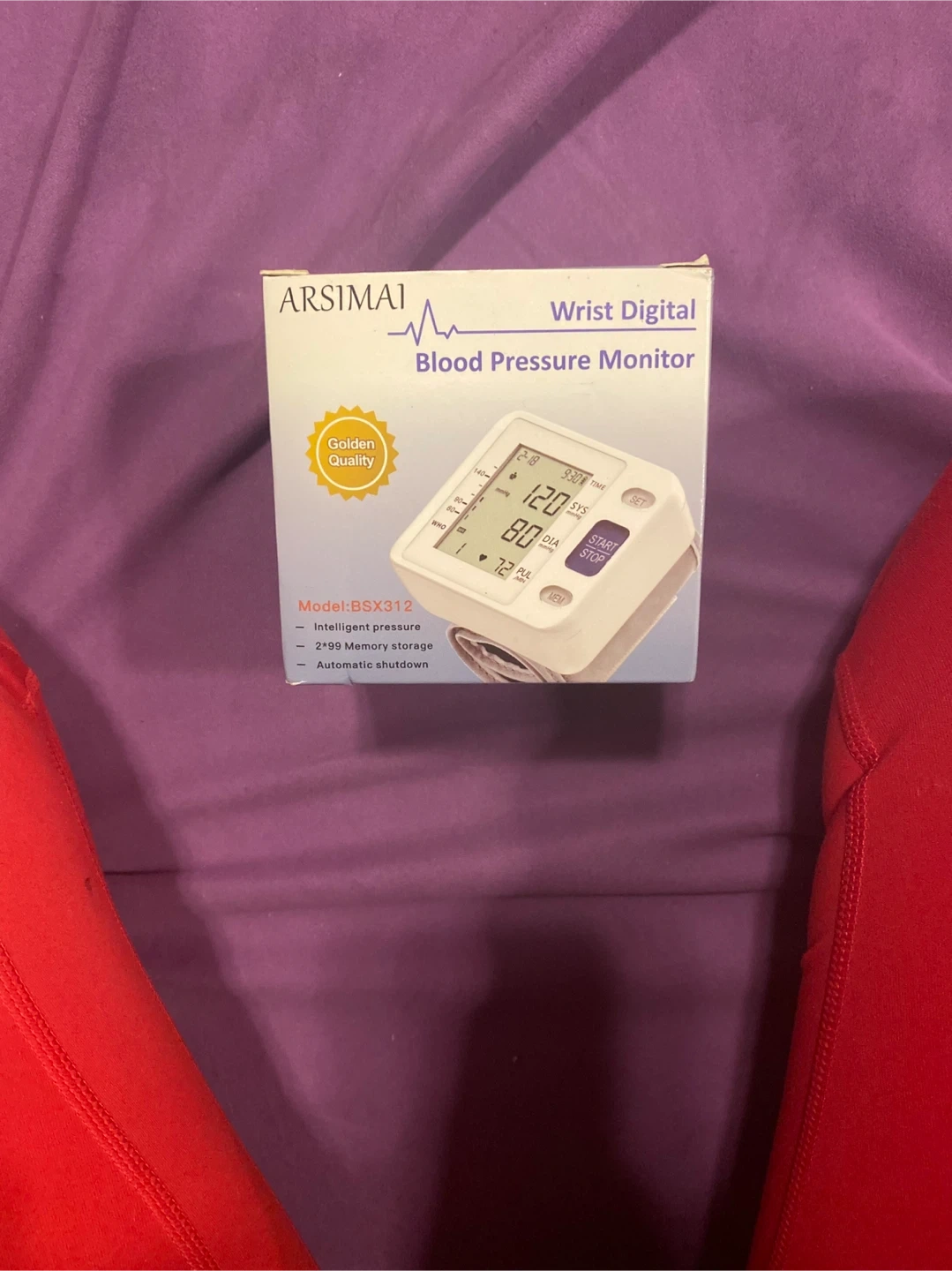 Arsimai Wrist Digital Blood Pressure Monitor. It features intelligent pressure, 2x99 memory storage, and automatic shutdown. WHO Standards compliant and easy to use. This monitor is suitable for home health tracking.