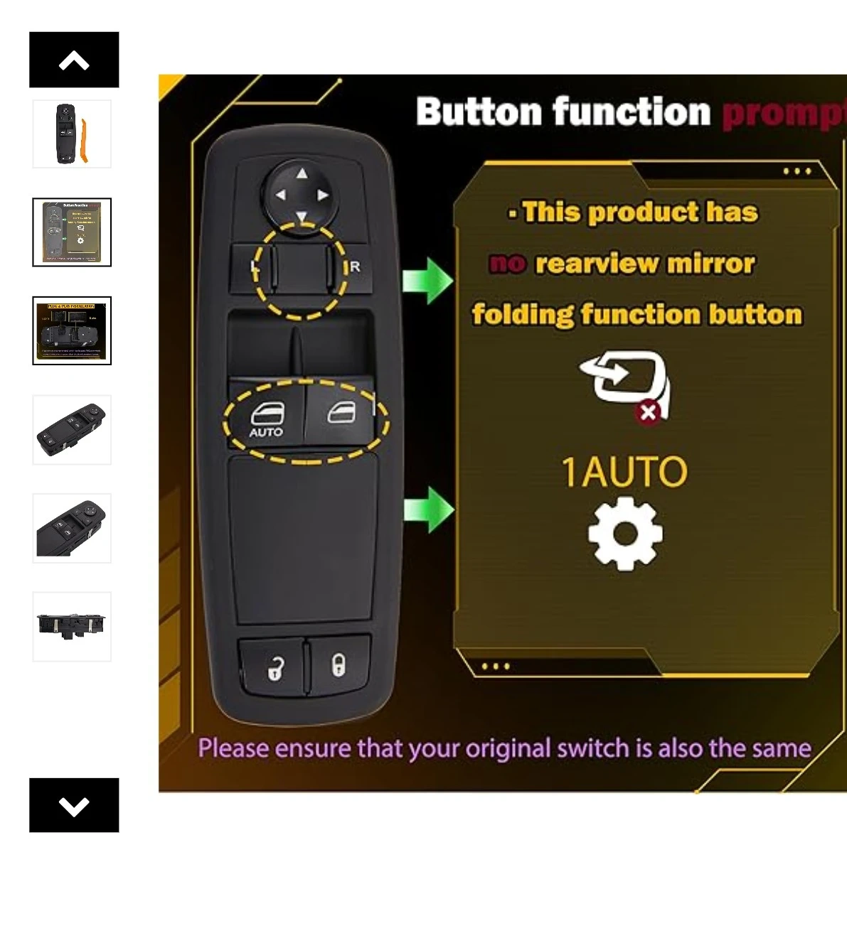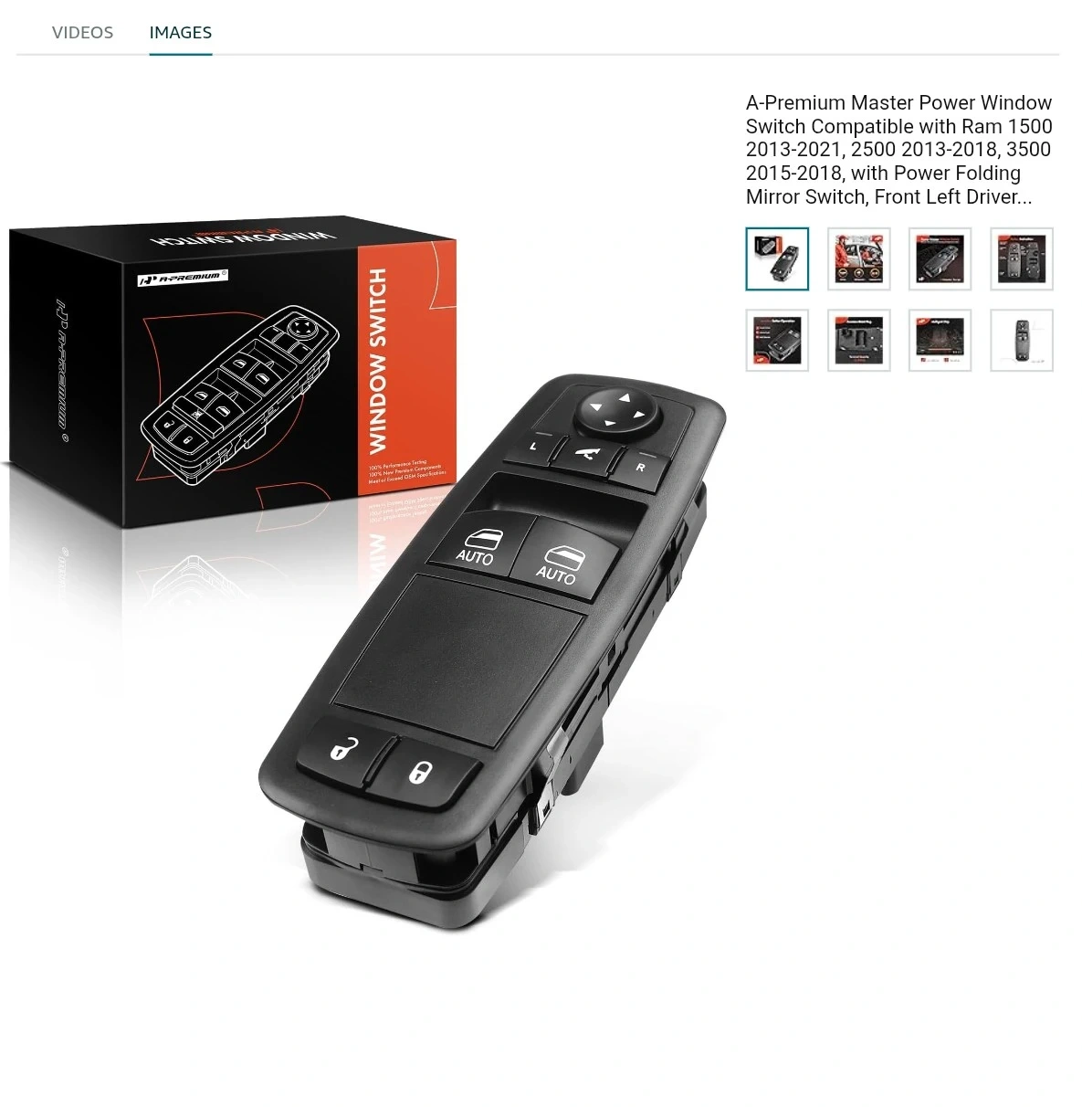 This A-Premium master power window switch is designed for Ram 1500 and 2500 models from 2013-2021. It's a front left driver's side replacement with auto up/down functions for the windows. This switch features 8 pins and is plug-and-play for easy installation.