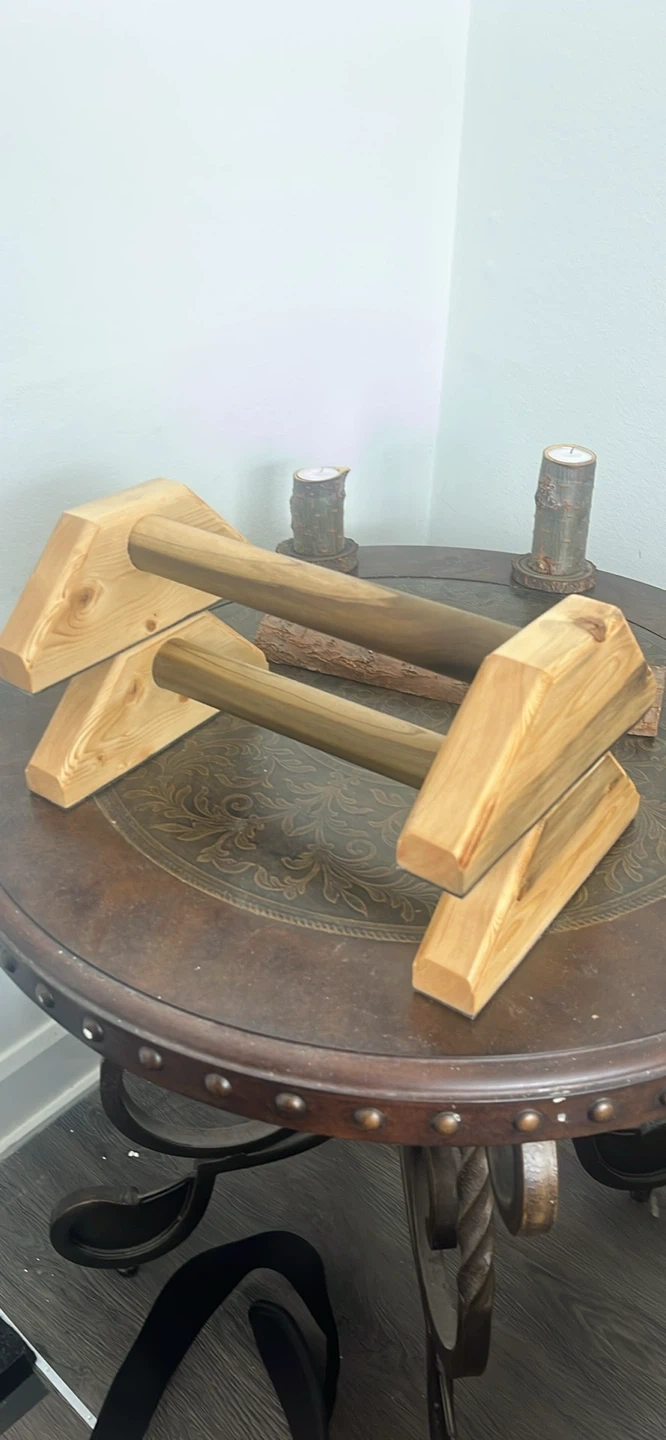 These wooden parallettes are perfect for calisthenics and strength training exercises. They're made from solid wood for durability. They're great for push-ups, dips, and handstands.