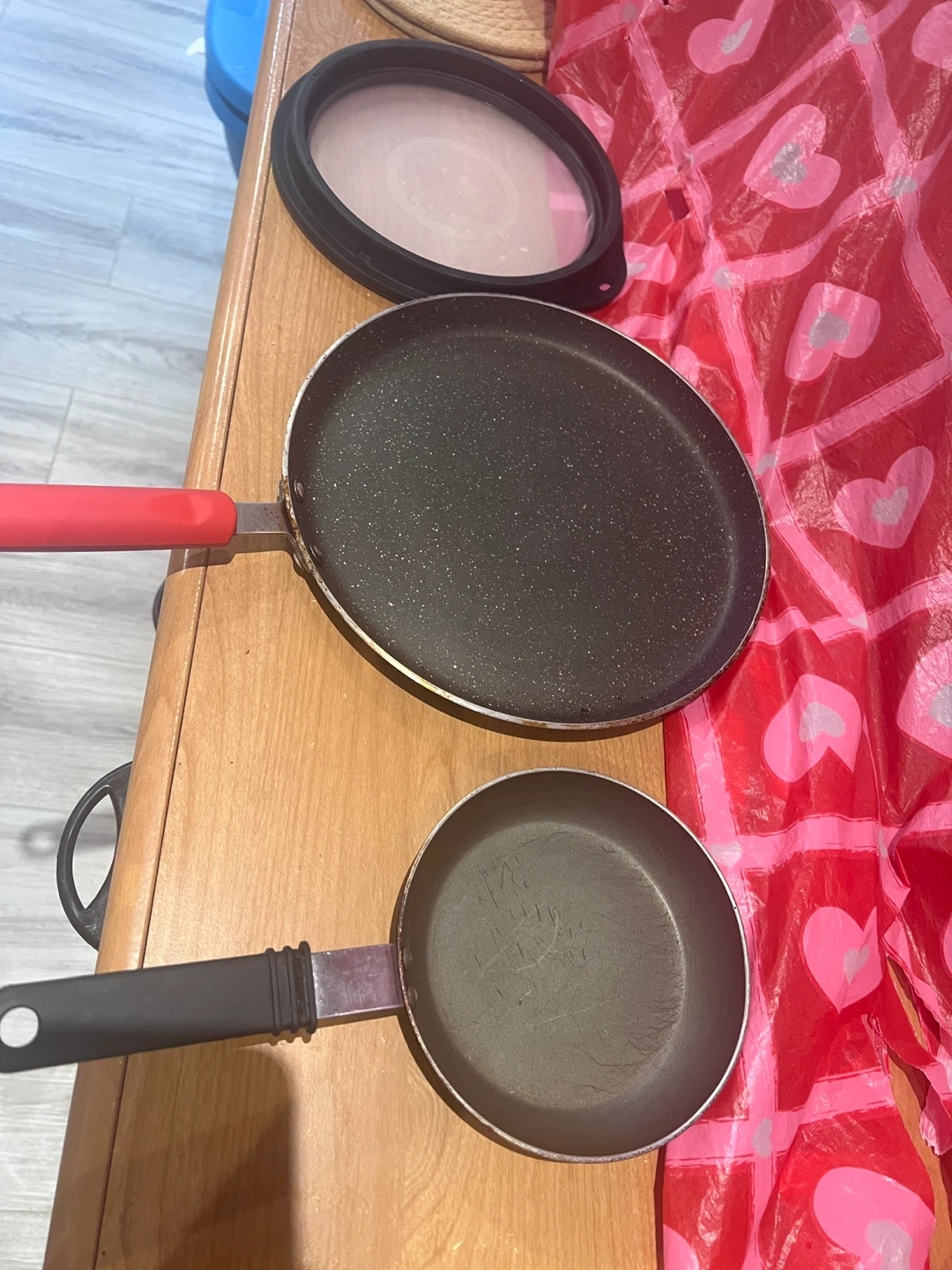 Selling a few pans and a pot. One of the pans is a Wonderchef brand. They have been used so they are not in perfect condition, but they are still useful!