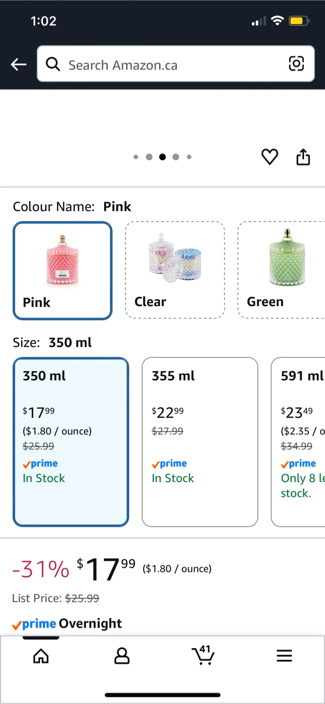 Pink Glass Candy Jar with Crystal Lid