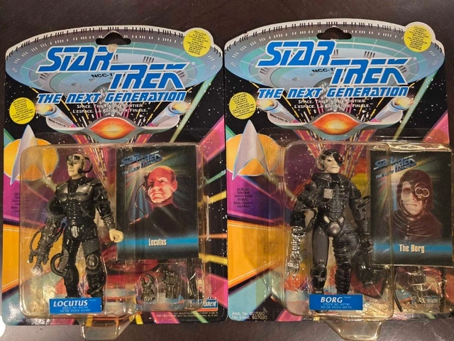 Up for grabs are these vintage Star Trek: The Next Generation action figures from Playmates! Both Locutus and The Borg are still sealed in their original packaging and are in new condition. A real find for any Star Trek collector! These figures are ready to beam into your collection. If the ad's still up, they're still available.