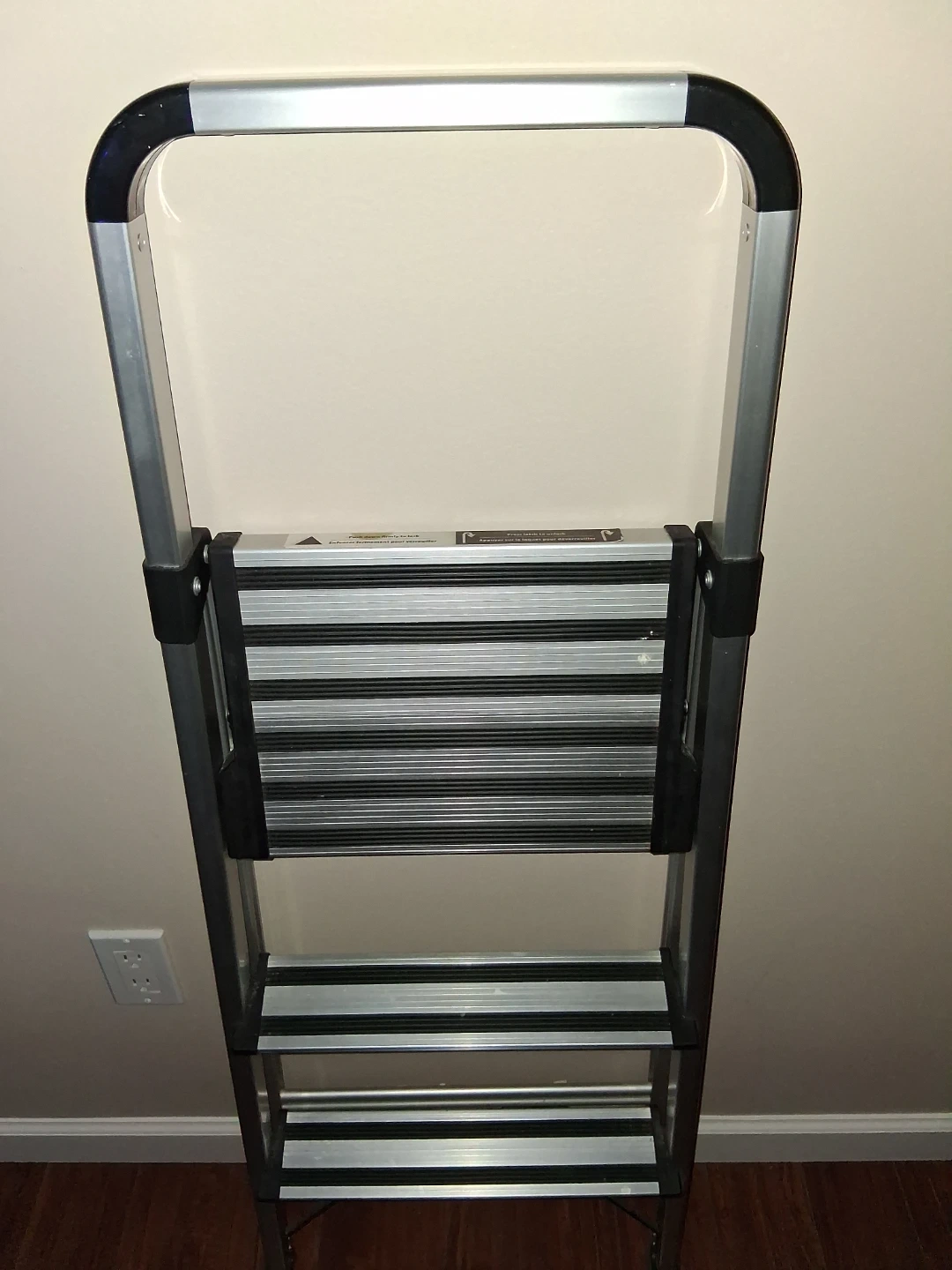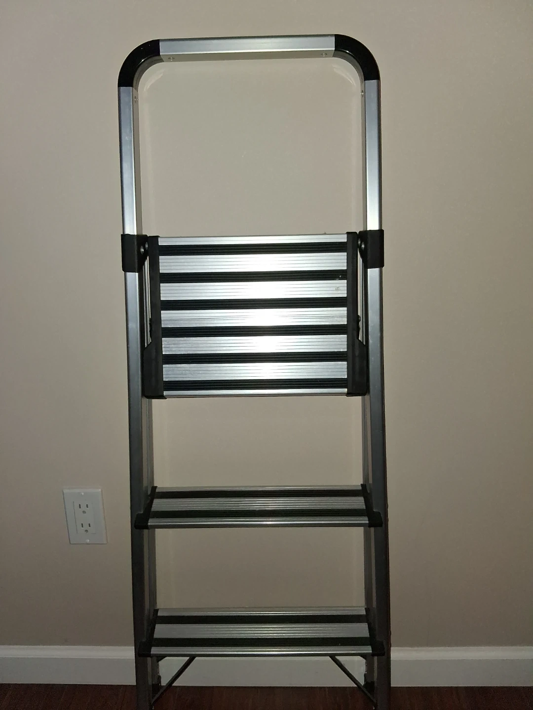 This is a 3-step aluminum step ladder. It's made of durable aluminum and features non-slip treads. Easy to fold and store! Clean and new. Ready for a new home.