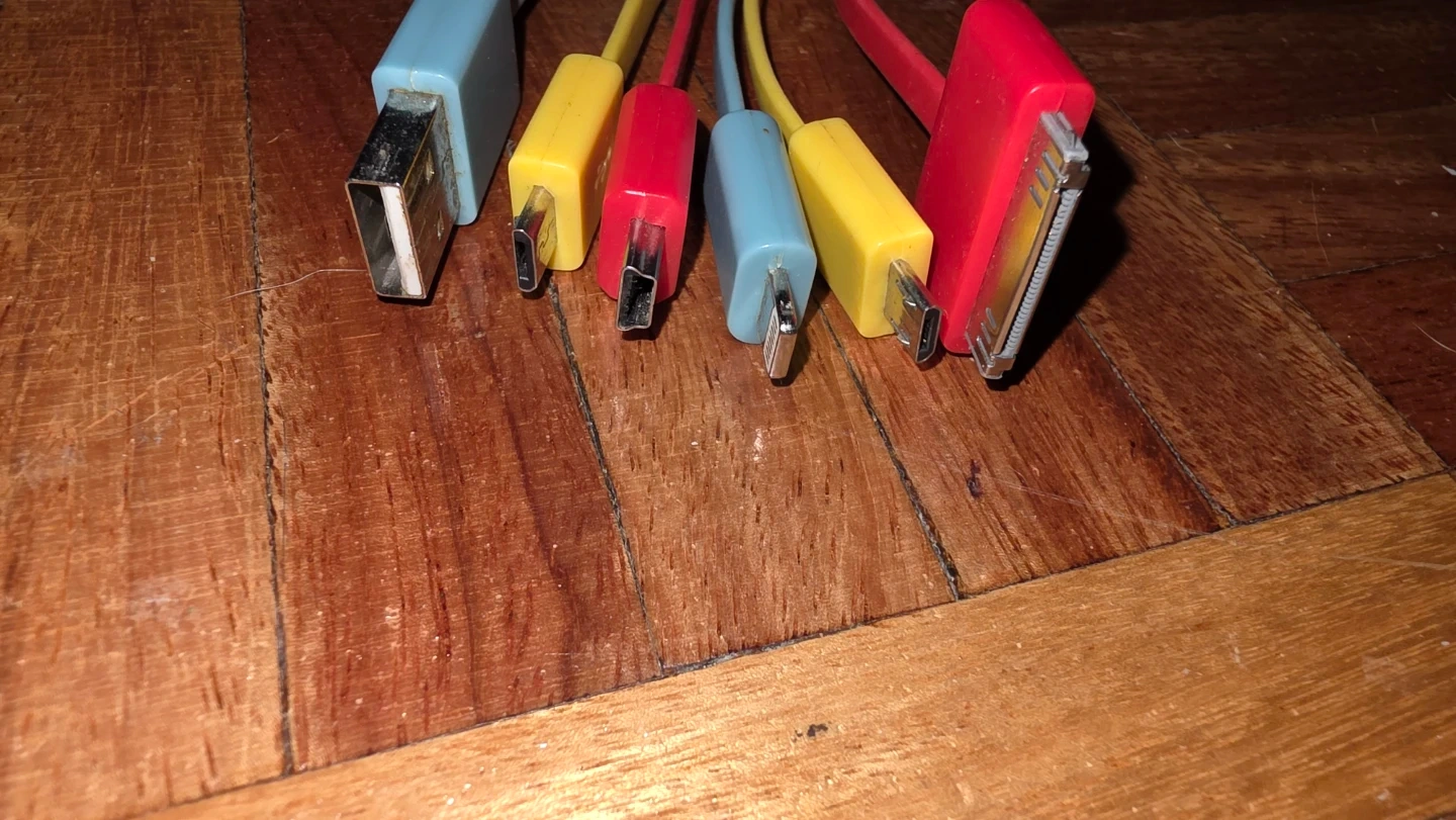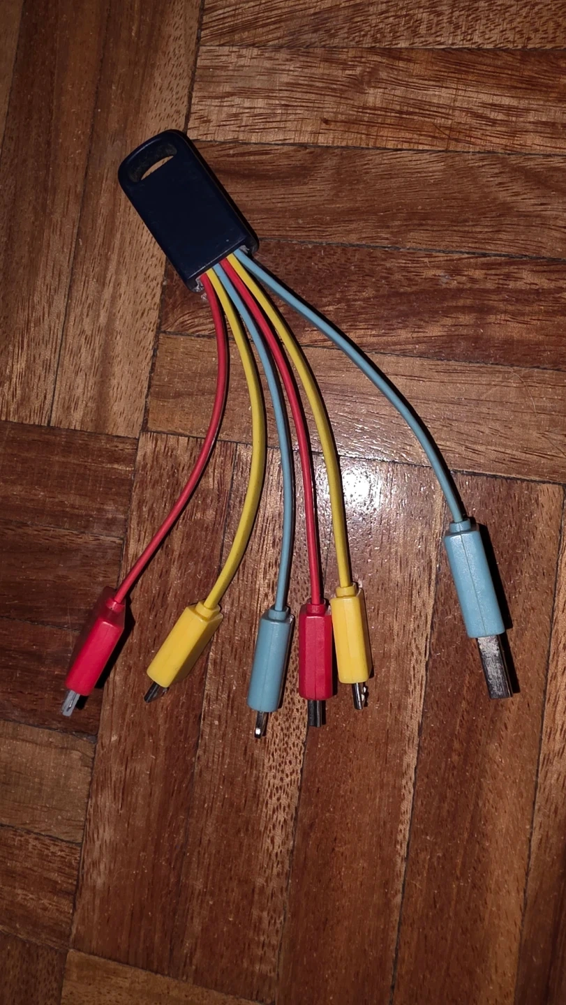 Multi-charging cable with USB-A to multiple connectors. Includes USB-C, Micro USB, and Lightning connectors. Great for charging various devices!