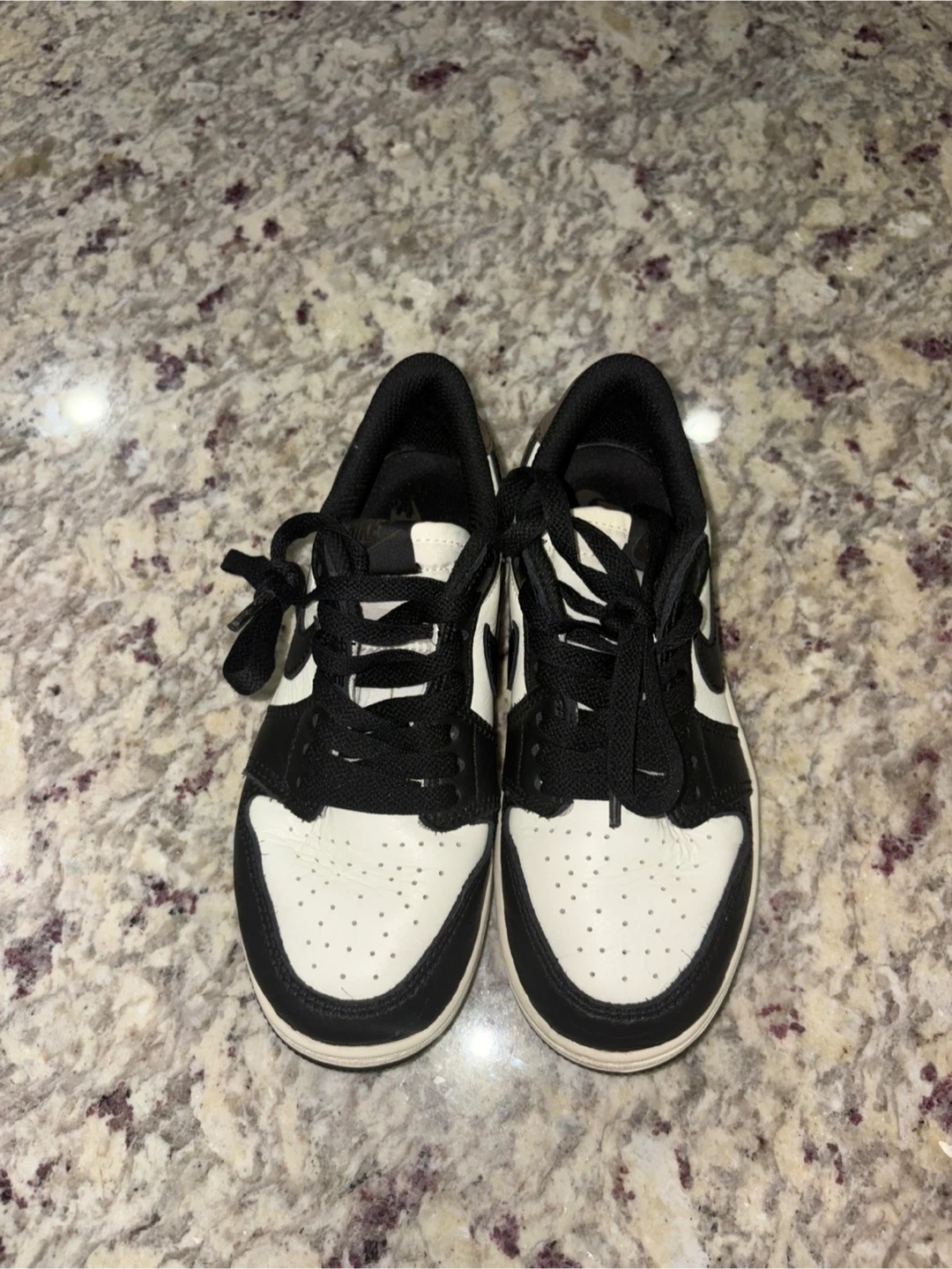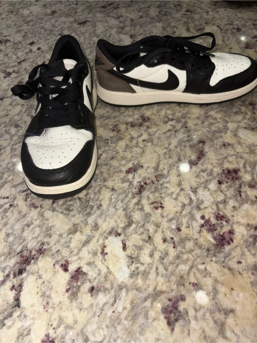 Selling a pair of Air Jordan 1 Low sneakers in black and white. They show some signs of wear, as you can see in the photos. Great for everyday wear! Size 13