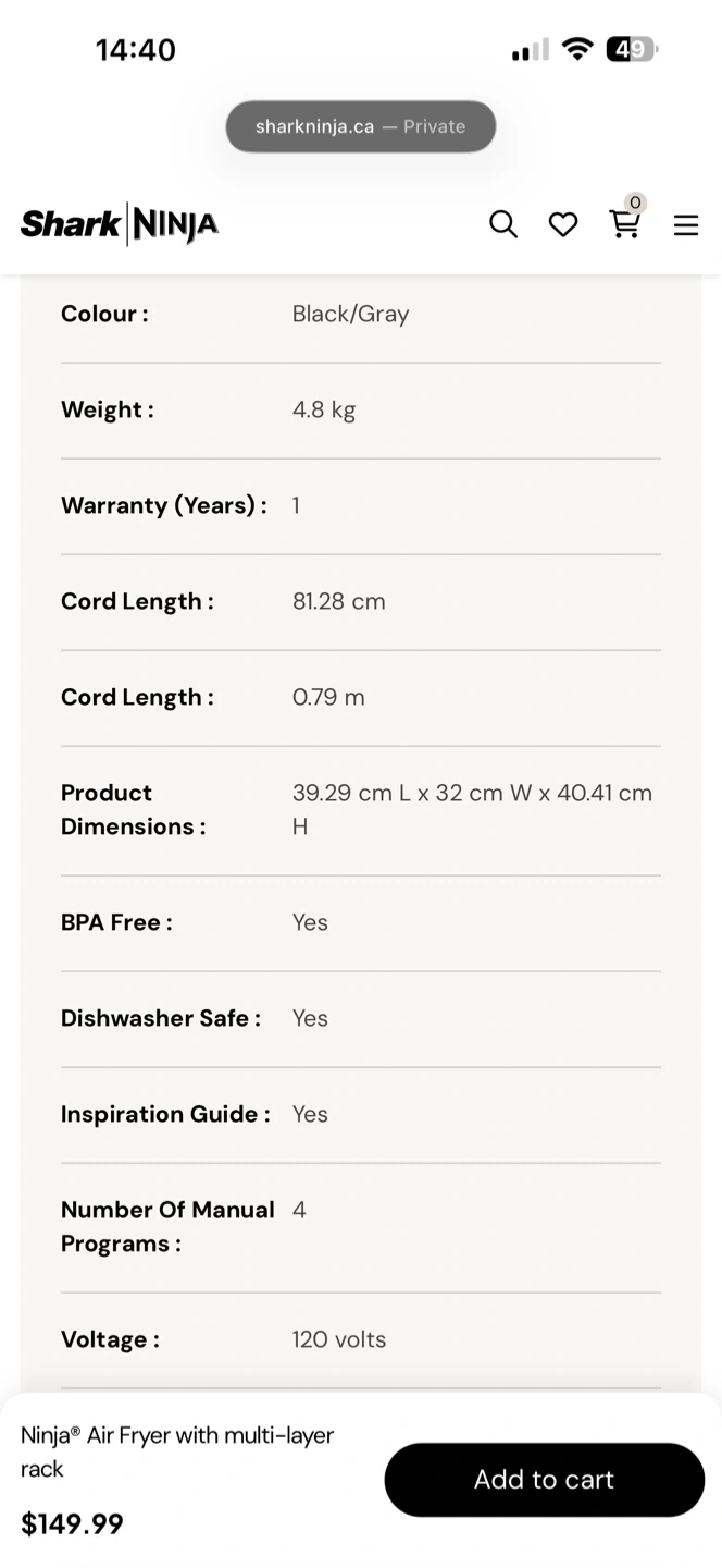 This is a Ninja AF101C air fryer. It comes with a basket, a crisper plate, and a multi-layer rack. This air fryer is great for cooking your favourite foods fast and easy! Like new condition. What you see is what you get. Pick up only at 4 Goldfinch court North York.