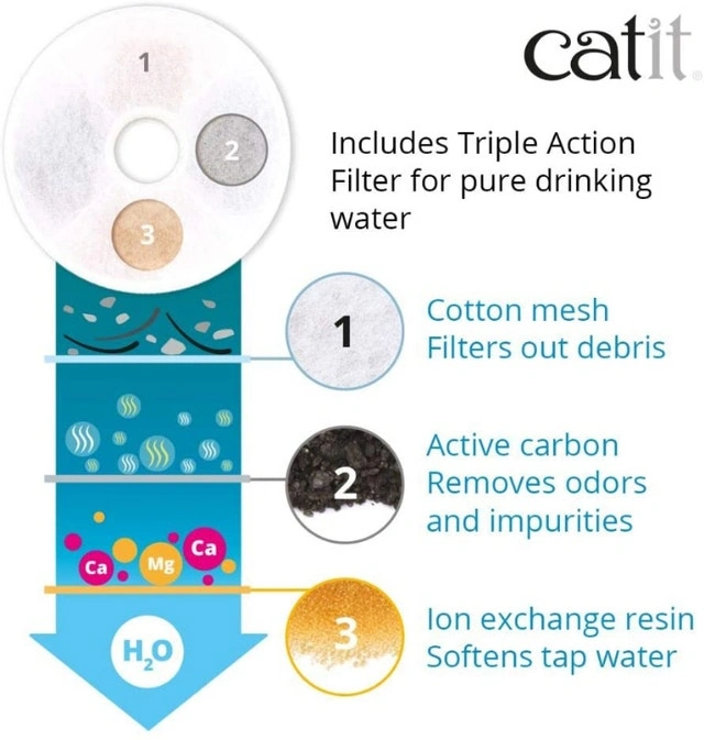 Catit Stainless Steel Top Drinking Fountain - 2 L (64 fl oz), White - 64 fluid ounce Stainless Steel drinking fountain - High-quality stainless steel top - Provides a continuous supply of fresh and filtered water - Re-circulating system-Cools and aerates water, inhibits bacteria growth - One Premium replaceable carbon filter included
