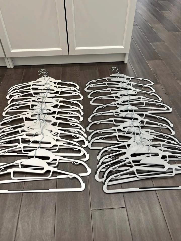 SONGMICS Non-Slip Clothes Hangers – 30 Pieces. 30 hangers included (might throw in a couple extra). Non-slip design helps keep clothes in place. Space-saving slim style. Can be used for dry or wet clothes. Used for about 4 months - in very good condition. Great for closets, laundry rooms, or organizing clothes. Selling all 30 together. Pick up only.