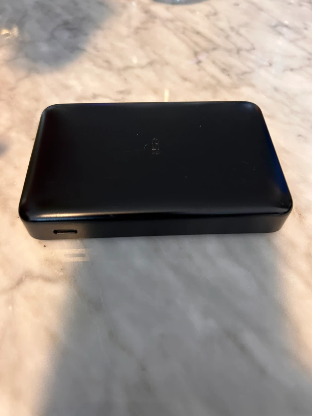 ESR MagSlim 10k powerbank is in black. It's a slim and compact MagSafe power bank that's great for keeping your devices charged on the go. Includes USB-C input/output port. 10000mAh bought for 79.99 Good condition as it’s been used a lot, still works perfect!