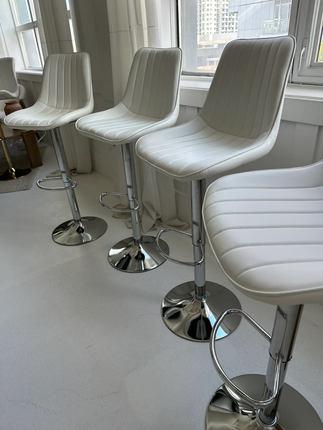 4 White Adjustable Bar Stools