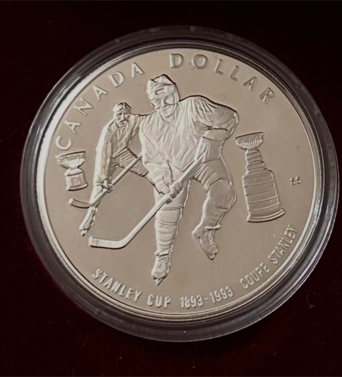 This item is a 1993 Canada Stanley Cup Centennial Proof Sterling Silver Dollar.