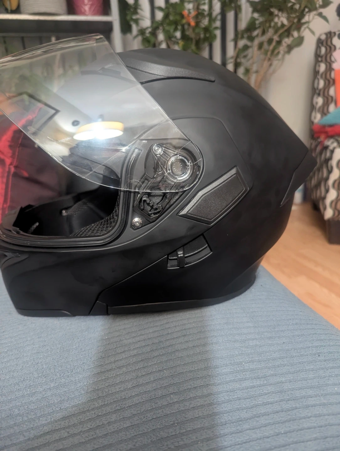Brand new motorcycle Dual Visor Flip up Modular Full Face Helmet, DOT LED Light, Model 902L (XL, Matte Black - LED).
