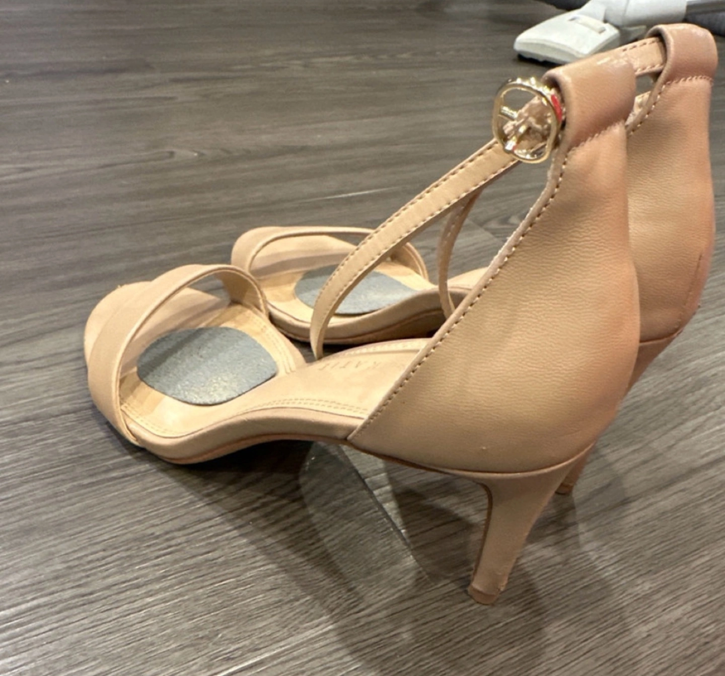 18Nude leather heels with ankle strap. Size 9