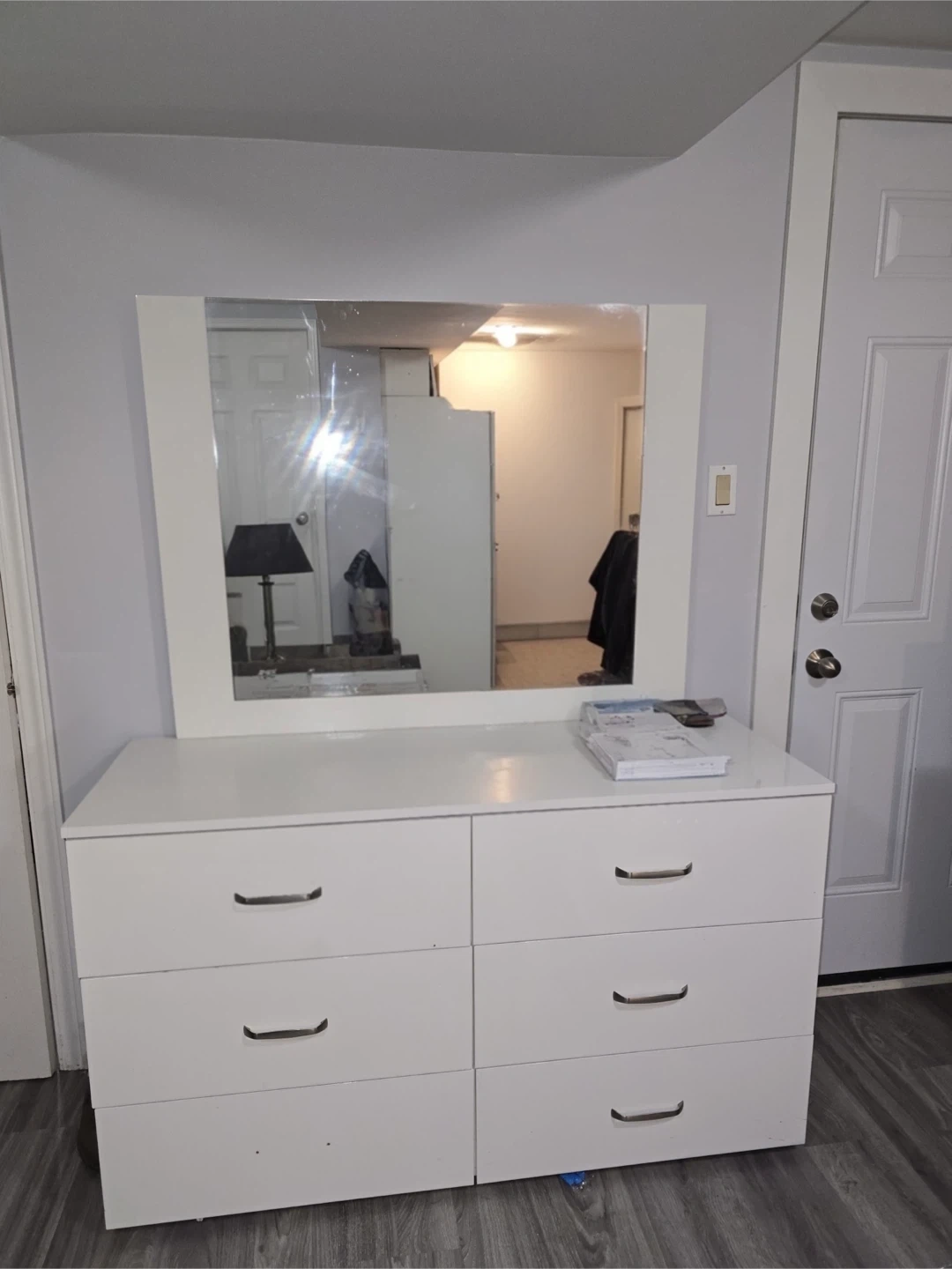 White 6-Drawer Dresser with Mirror