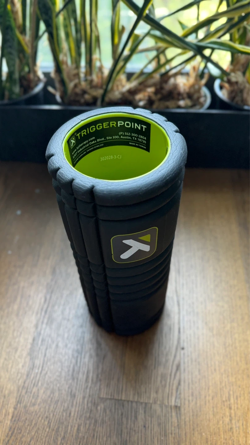 This Trigger Point foam roller is designed for deep tissue massage. It's made with a durable EVA foam exterior and a dense core. Its textured surface helps target muscle knots and improve flexibility.