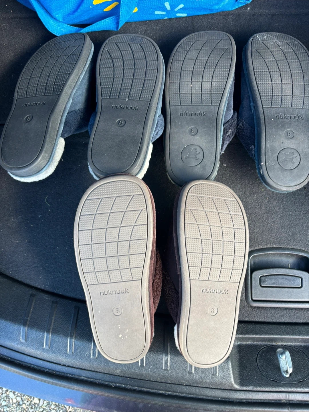 60Selling 3 pairs of Nuknuuk slippers! Two pairs is a nice dark blue and the other is a dark brown. Both are size 8 and in great condition. They have super cozy, fluffy interiors, perfect for keeping your feet warm this winter!$15 each