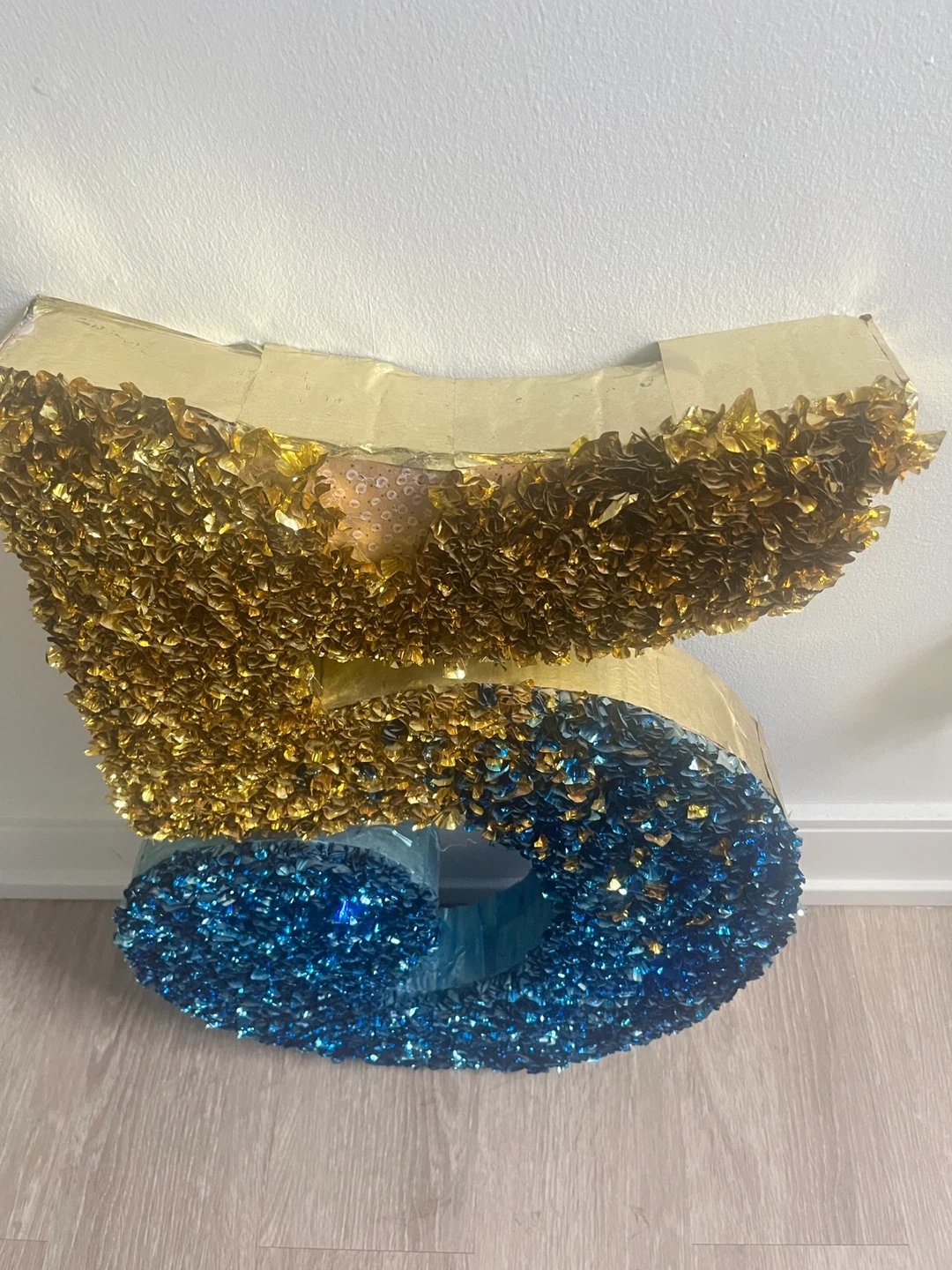 116Selling a number 5 decoration, perfect for parties or birthdays! It's decorated with gold and blue accents