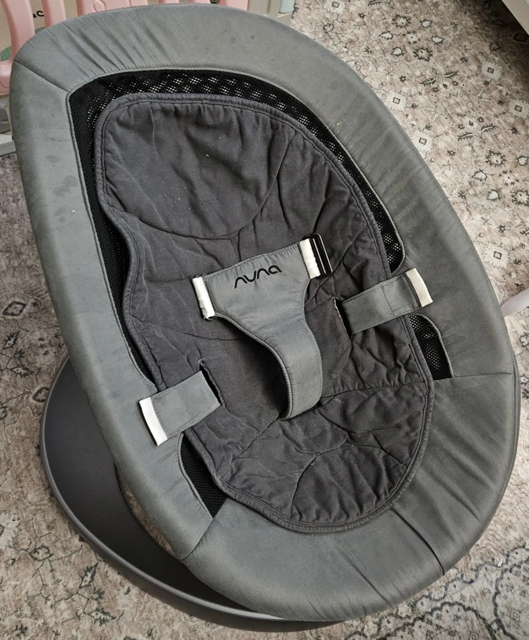76Gently used and in great condition. Selling because our baby has outgrown it. Comes with the original harness for infant mode (up to 20 lb / 9 kg). It can be removed for toddler/child mode (up to 130 lb / 59 kg). - Smooth side-to-side motion (no batteries or cords needed) - Locks in place for feeding or playtime - From a smoke-free, pet-free home - Super comfy and great for soothing babies