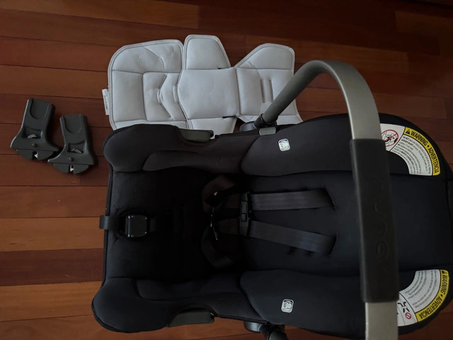 Gently used Nuna PIPA car seat in excellent condition — clean, well-cared-for, and from a smoke-free home. Comes with the matching adapters and a sturdy base (included as a gift!). Super safe, stylish, and easy to install. Suitable for newborns. Lightweight and easy to carry. Premium comfort padding and side impact protection (SIP). Compatible with many strollers (with adapters). A great deal for a high-end seat that retails for much more! This is in excellent condition and comes with a gift!