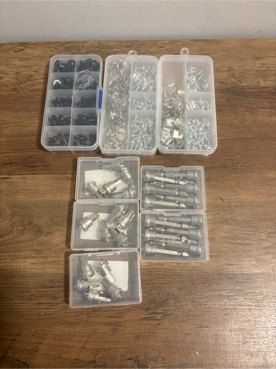 This set includes various black and silver screws and clips organized in compartments. It also contains multiple PH2 drill bits. Handy for various home or workshop projects!