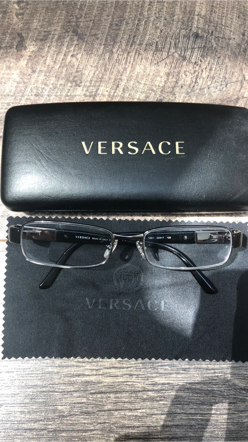 This is Versace eyeglasses with a silver and black frame. They come with the original Versace hard case and cleaning cloth. Made in Italy.