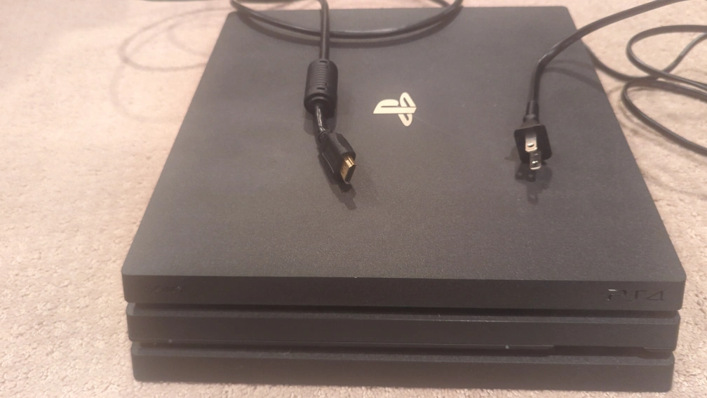 Black PS4 console with HDMI and power cables included. No controllers, working condition.