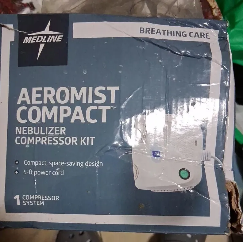 This Medline Aeromist Compact Nebulizer Compressor Kit comes with a compact, space-saving design and a 5-ft power cord. It's a 1 compressor system. This is great for personal breathing care.