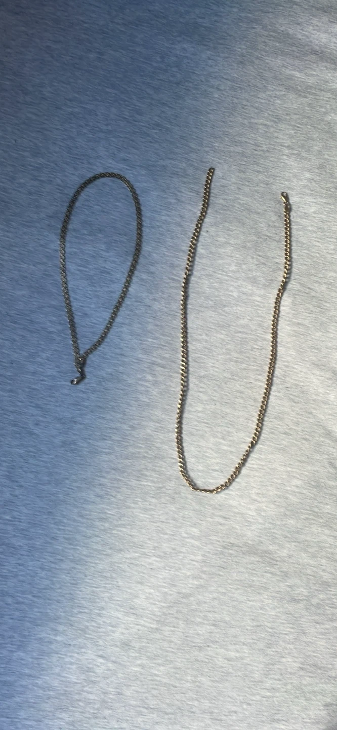 This listing includes a gold-tone chain necklace with a small 'J' pendant, and a separate gold-tone chain. The chains appear to be made of metal. Perfect for layering or wearing individually!