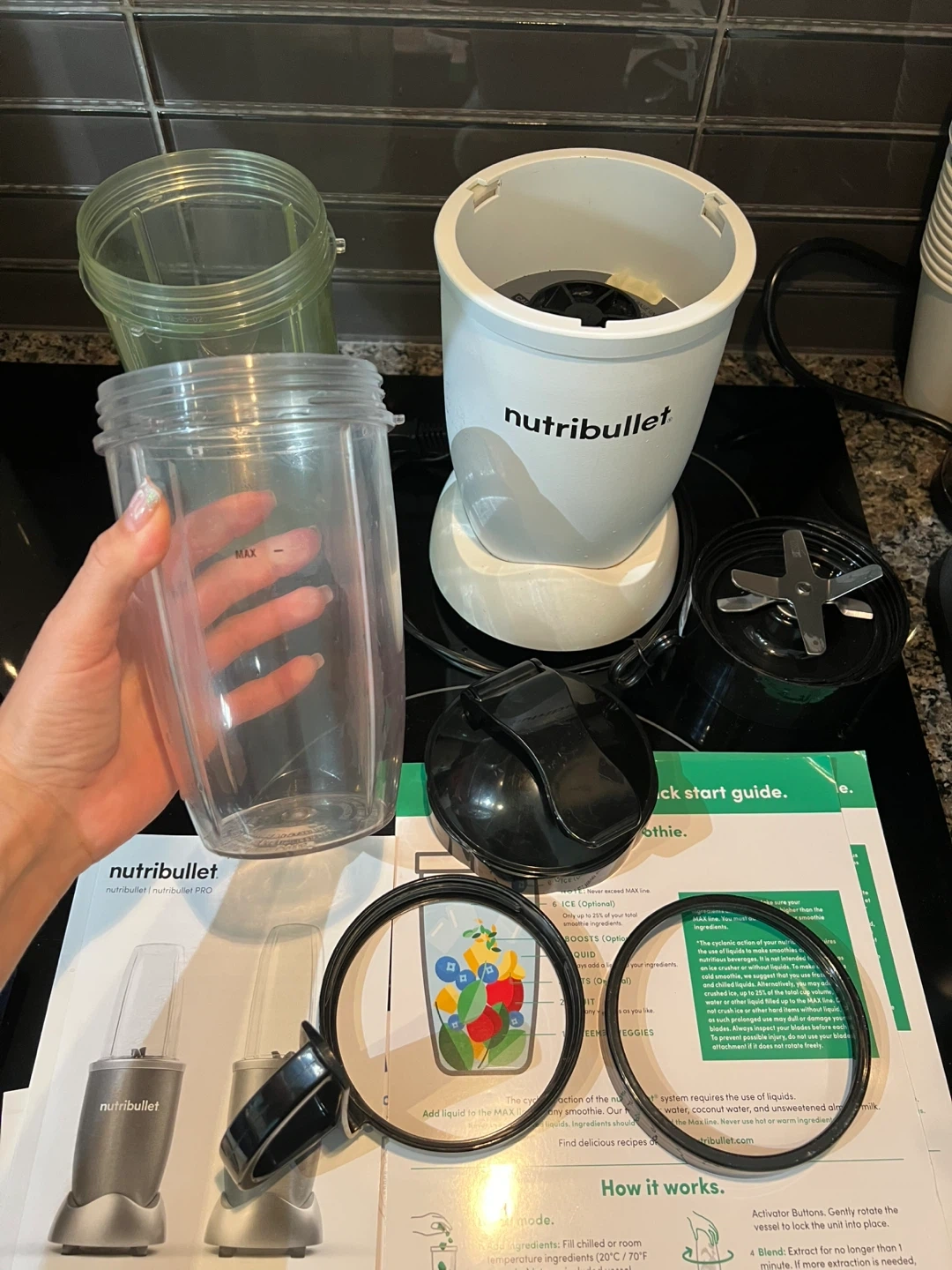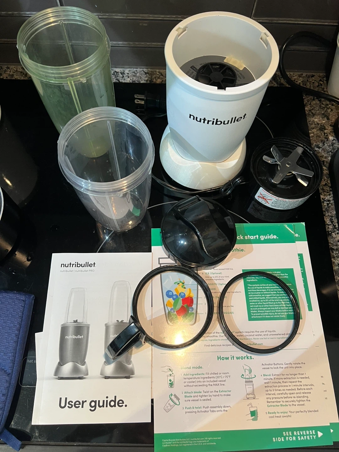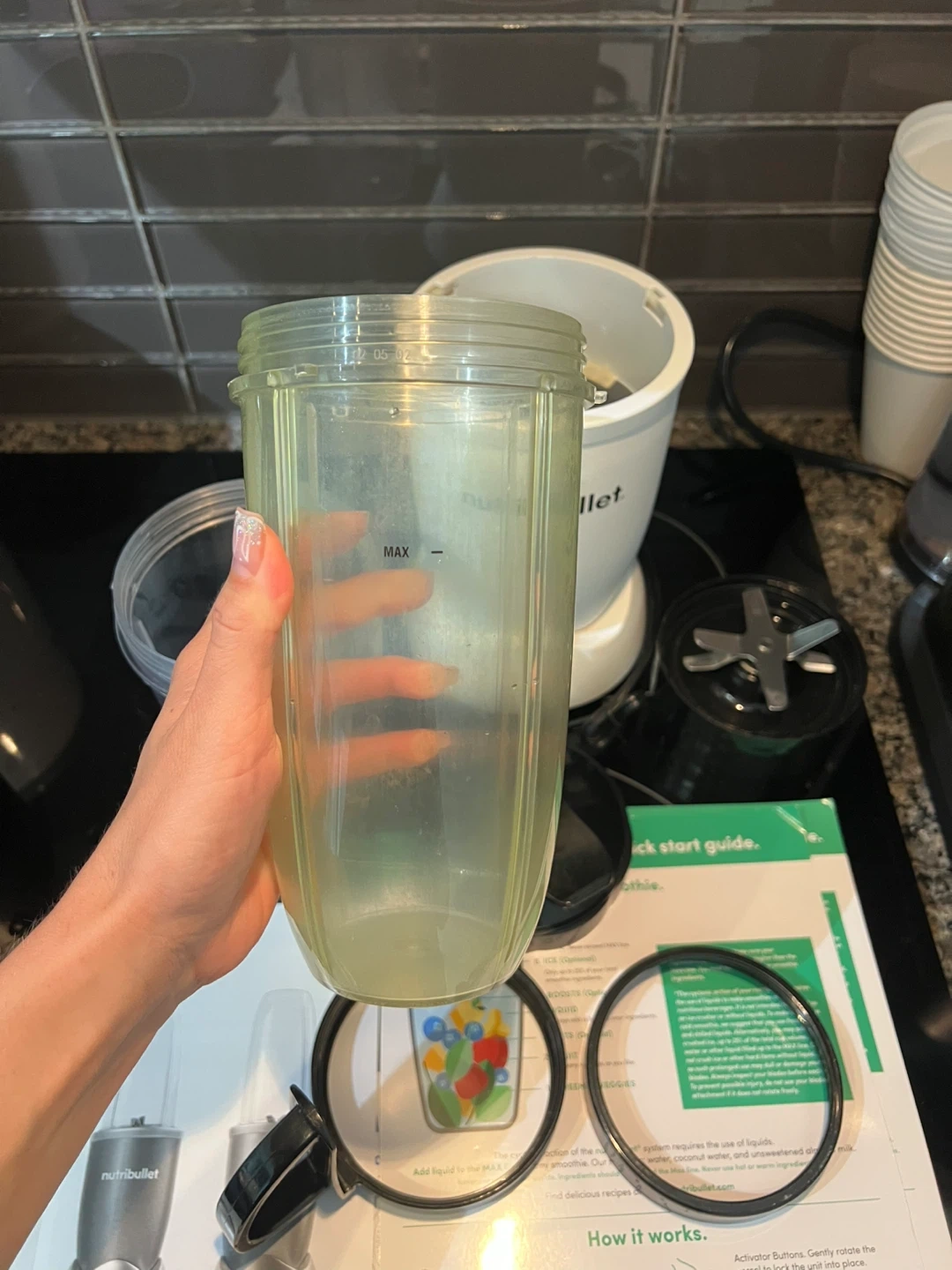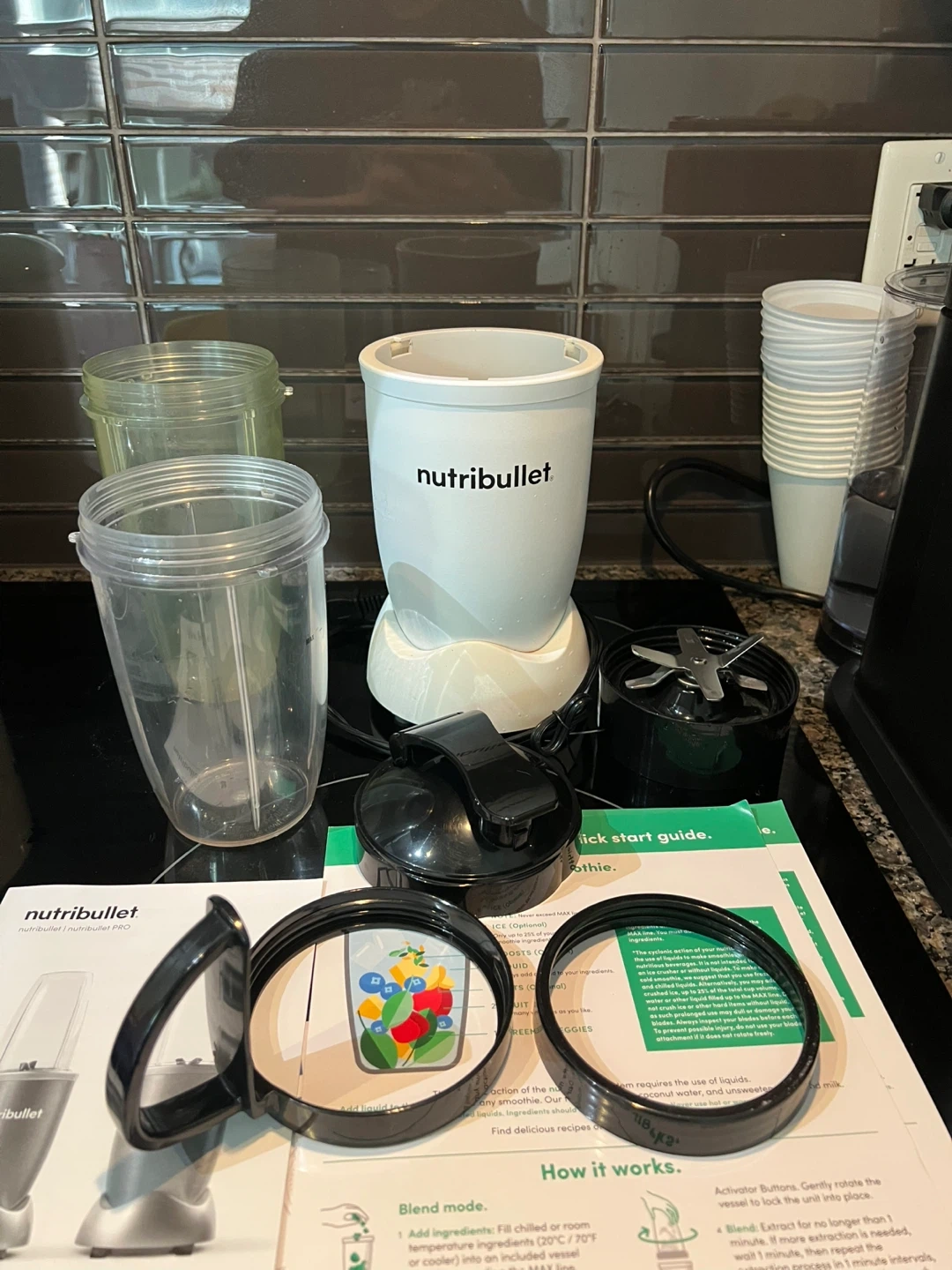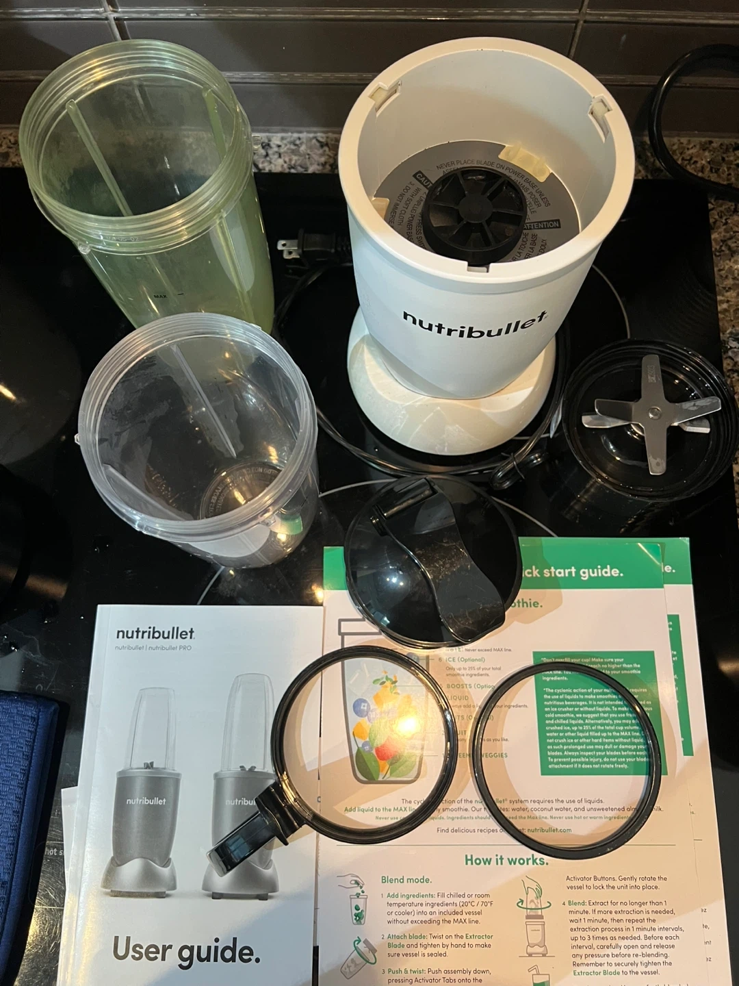 226Selling a NutriBullet Pro blender set! It comes with the base, blade, two different sized cups, lids, and the user guide. Great for making smoothies and other blended drinks at home. One cup is yellow because I blended turmeric in it - it stained the walls and they stayed yellow. But the cup is 100% clean. If you ever dealt with turmeric - you know