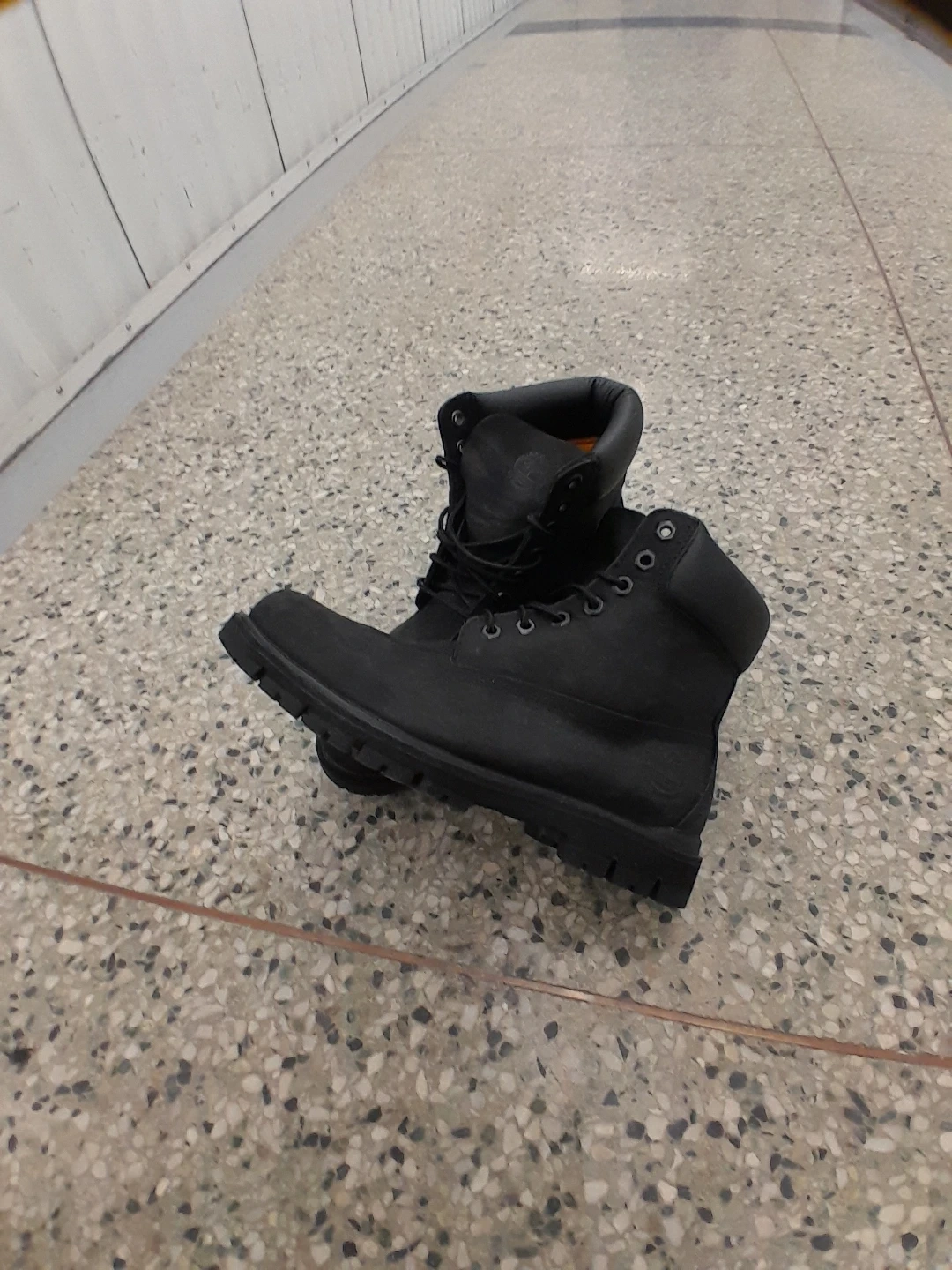Classic black Timberland boots. Features a durable rubber sole and comfortable interior lining. These boots are great for outdoor activities or everyday wear. Men's Size 10