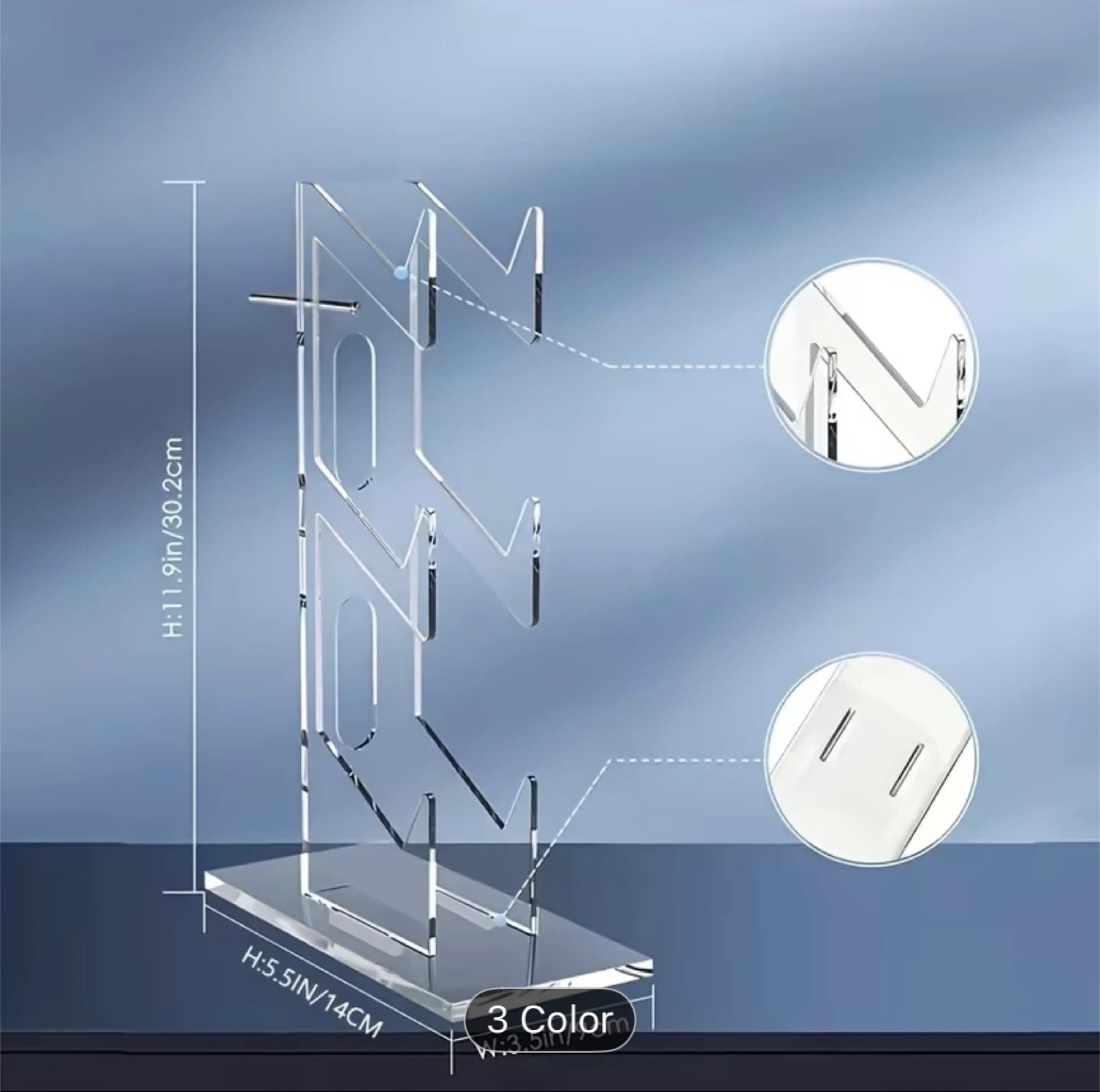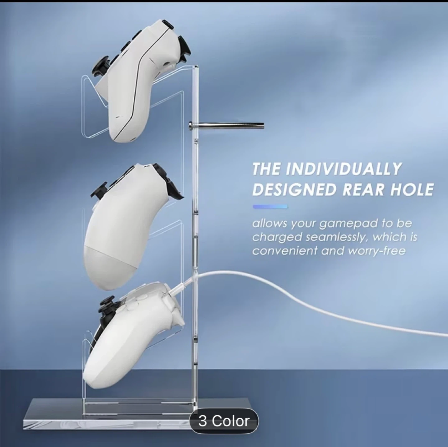 Selling a transparent stand for your gaming controllers and headset! It's in brand new condition and comes with the box. It's designed with individual rear holes for easy charging of your gamepads. The height is approximately 11.9 inches.