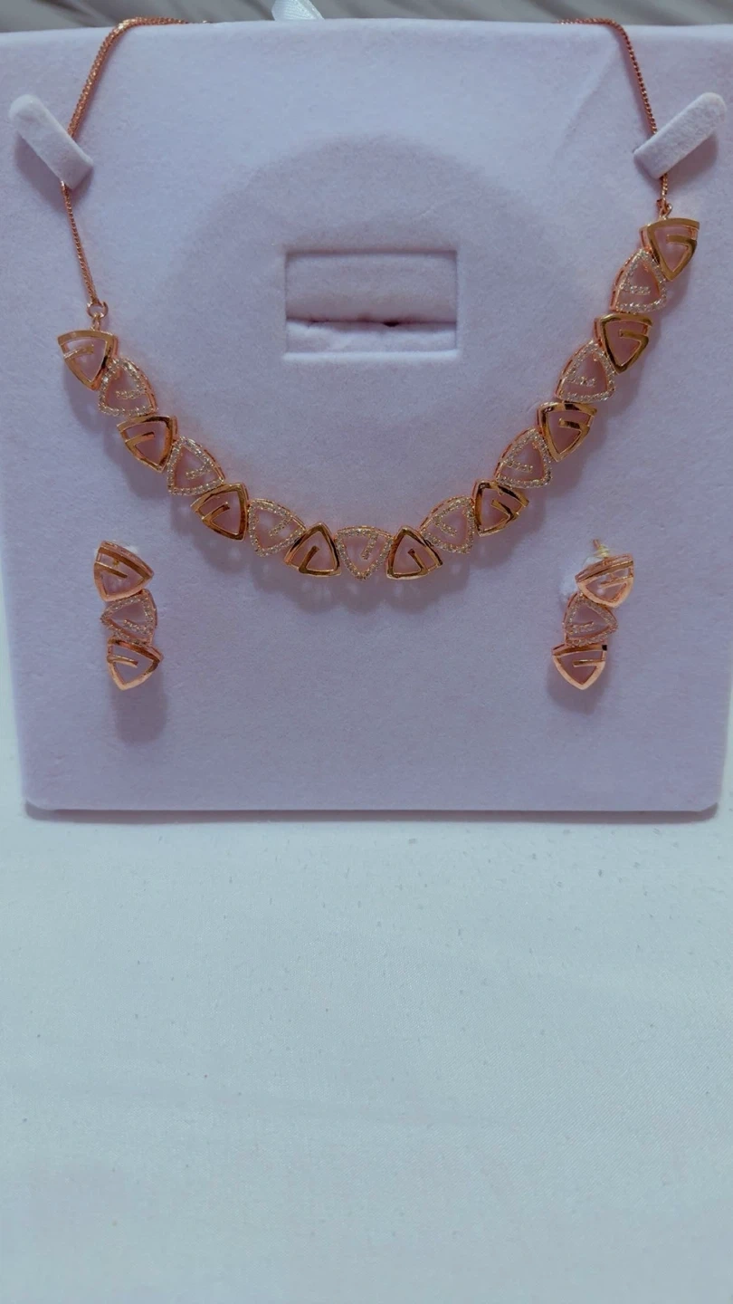 This set includes a necklace and matching earrings. It features colourful gemstones and a rose gold toned chain. It's a lovely accessory for special occasions!