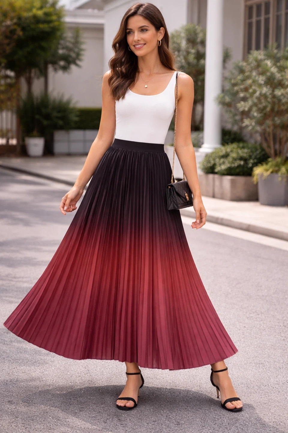 With its dreamy black-to-burgundy fade and gorgeous flowy pleats, this skirt moves like pure elegance. It gives classy, rich-girl vibes with every step and looks stunning for dinner dates, Eid, parties, or even cute Instagram pictures. Once you wear it, don’t be surprised when everyone asks, Where did you buy that?