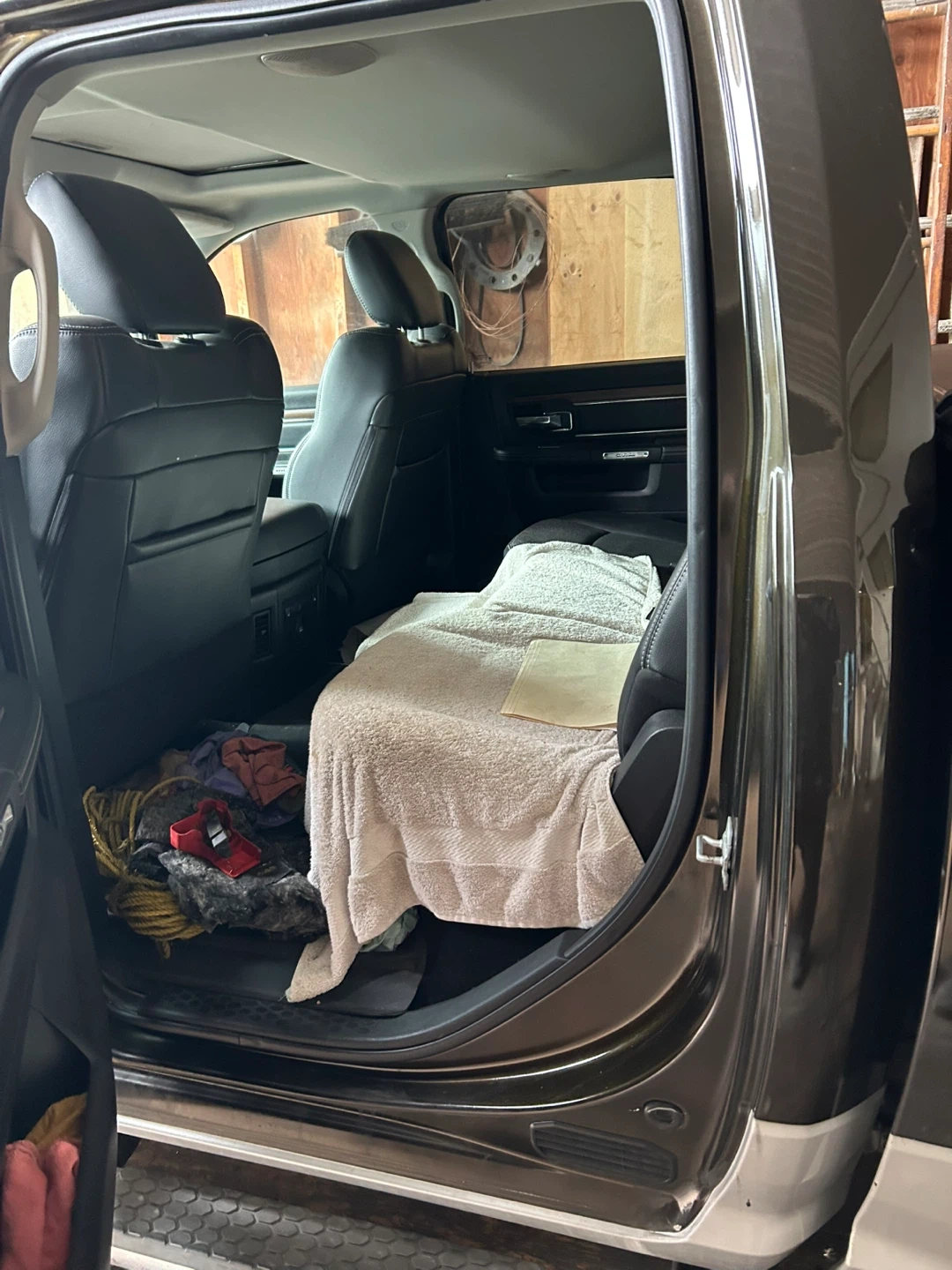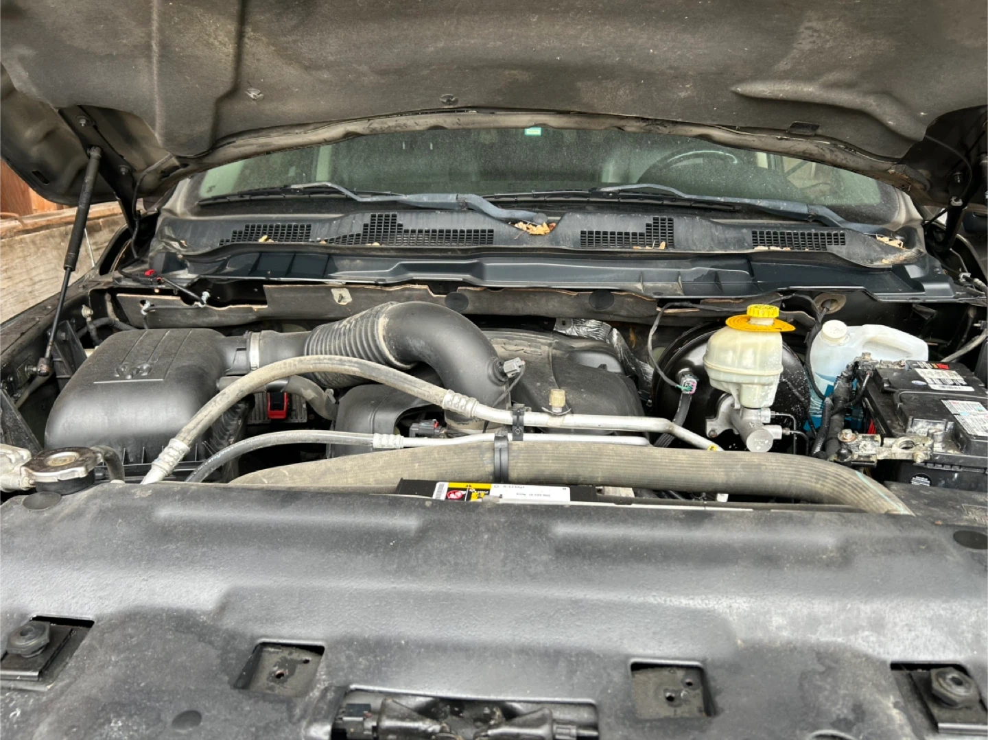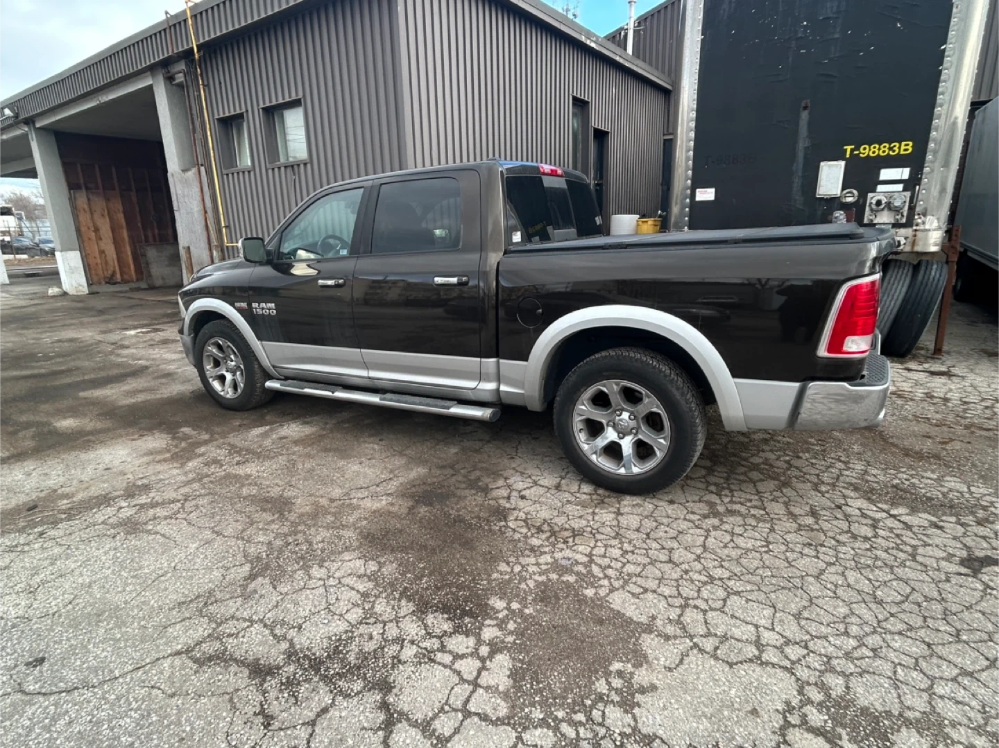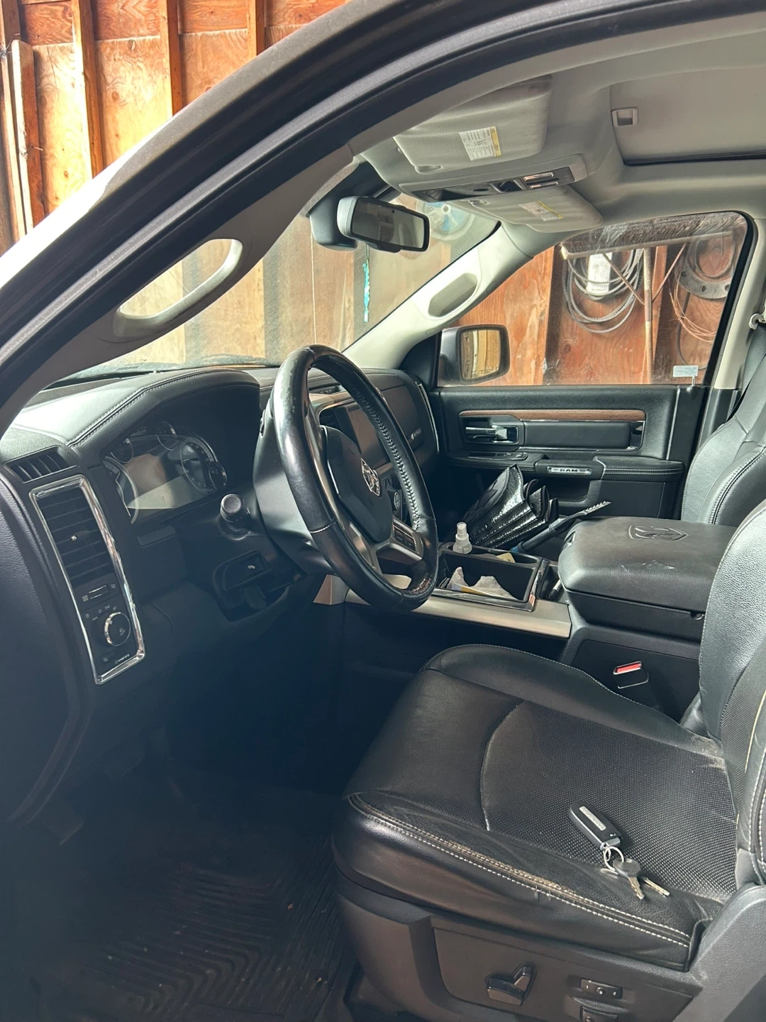 Dodge Ram 1500 pickup truck. It features a crew cab and 4x4 capability. The interior has leather seats. It's a reliable truck for work or play! 2014