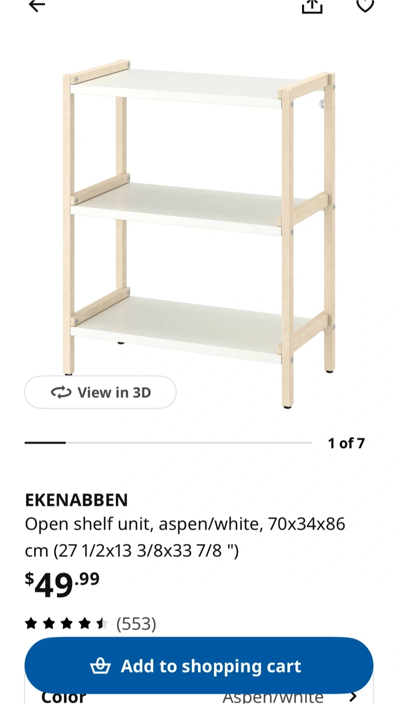 A simple white 3-tier shelf unit with a wooden frame. It's perfect for organizing books, decor, or other items in your home. The shelves are a light beige colour, providing a neutral and clean look.