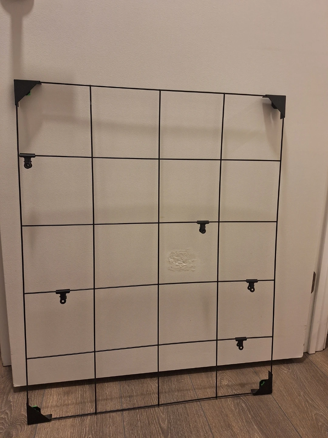 IKEA SÖSDALA memo board with clips included. It's black and measures 60x75 cm. This grid board is great for displaying photos or notes.