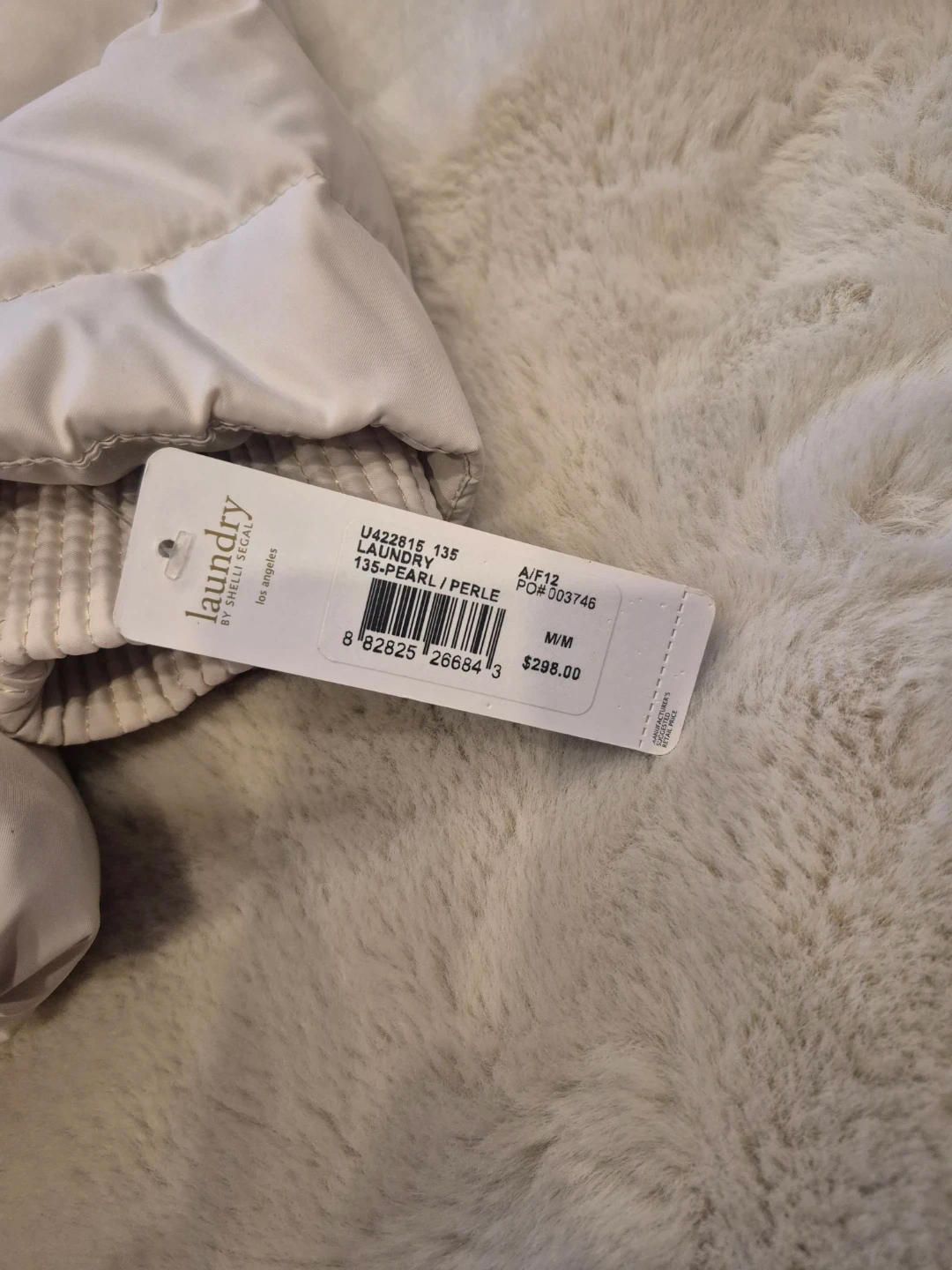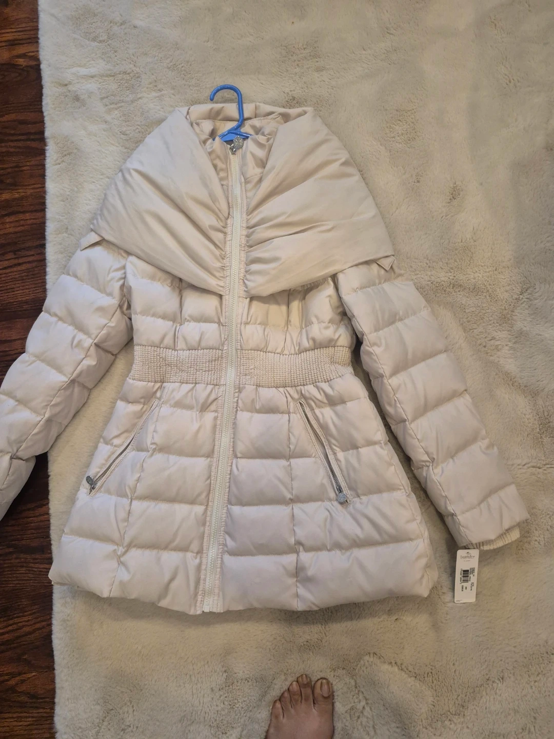 Here's a Laundry by Shelli Segal puffer jacket in size medium. It's a lovely pearl/perle colour! Originally bought for $298. It's in great condition and ready to keep you warm and stylish.