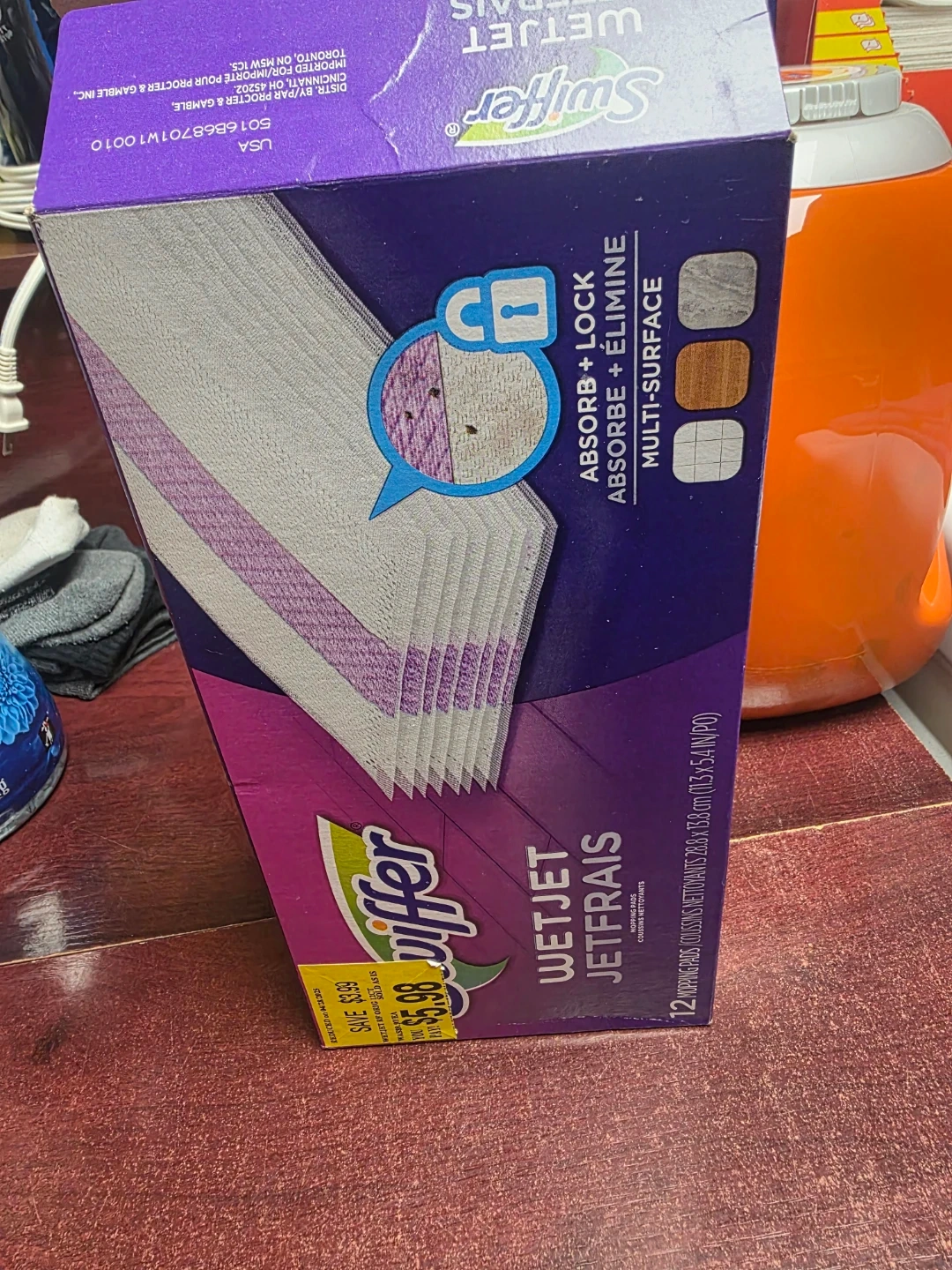 These Swiffer WetJet mopping pads are designed for multi-surface cleaning. They feature an absorb and lock technology to trap dirt. Each pad measures 28.3 cm x 13.8 cm. This box contains 12 cleaning pads.